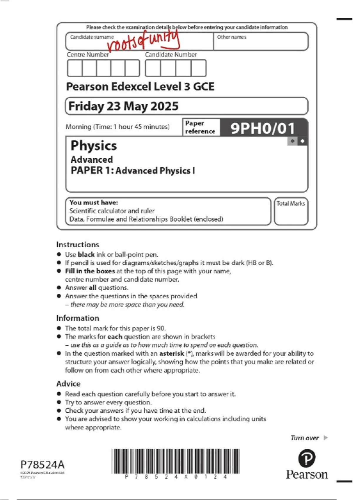 A-Level Edexcel Physics June 2025 Paper 1 Full Worked Solutions/Model Answers 9PH0-01