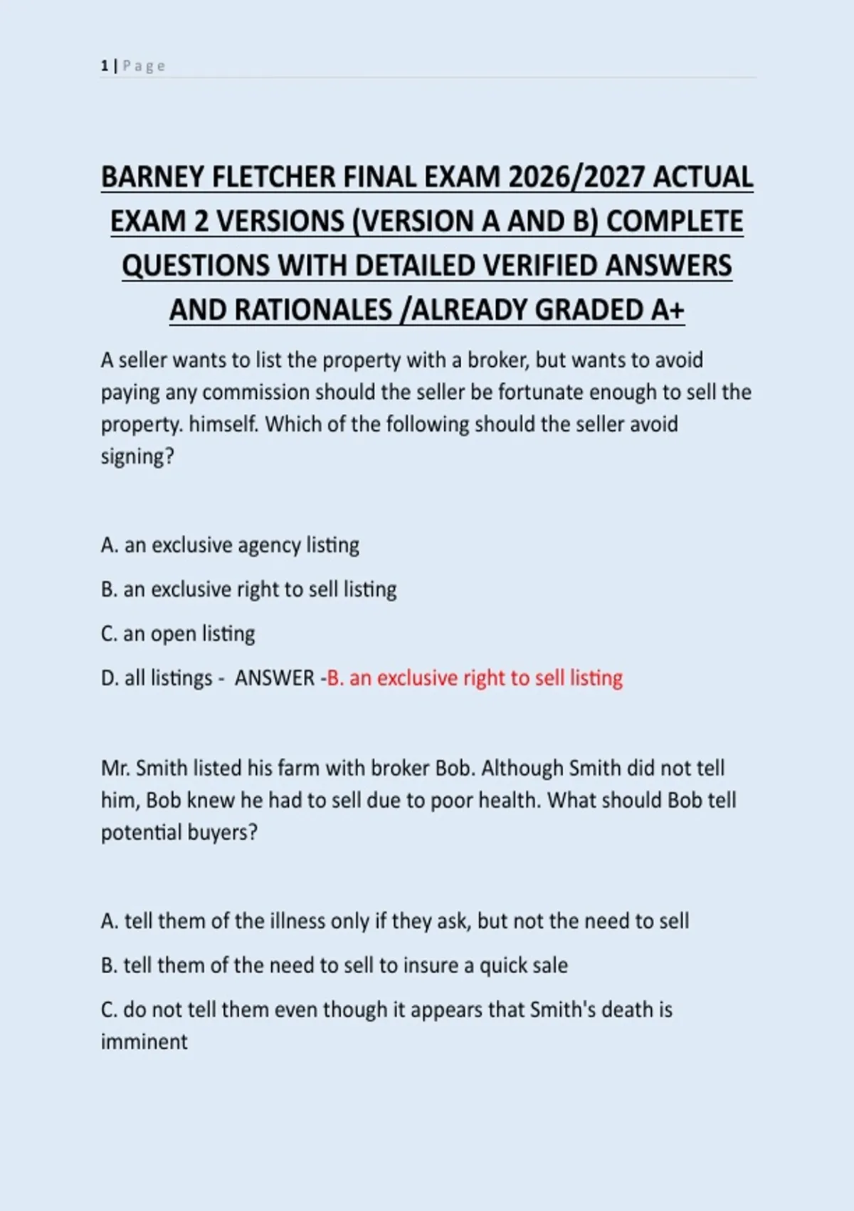 D. all listings - ANSWER -B. an exclusive right to sell listing