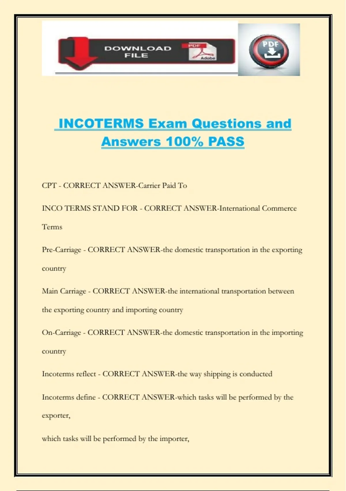 INCO TERMS STAND FOR - CORRECT ANSWER-International Commerce