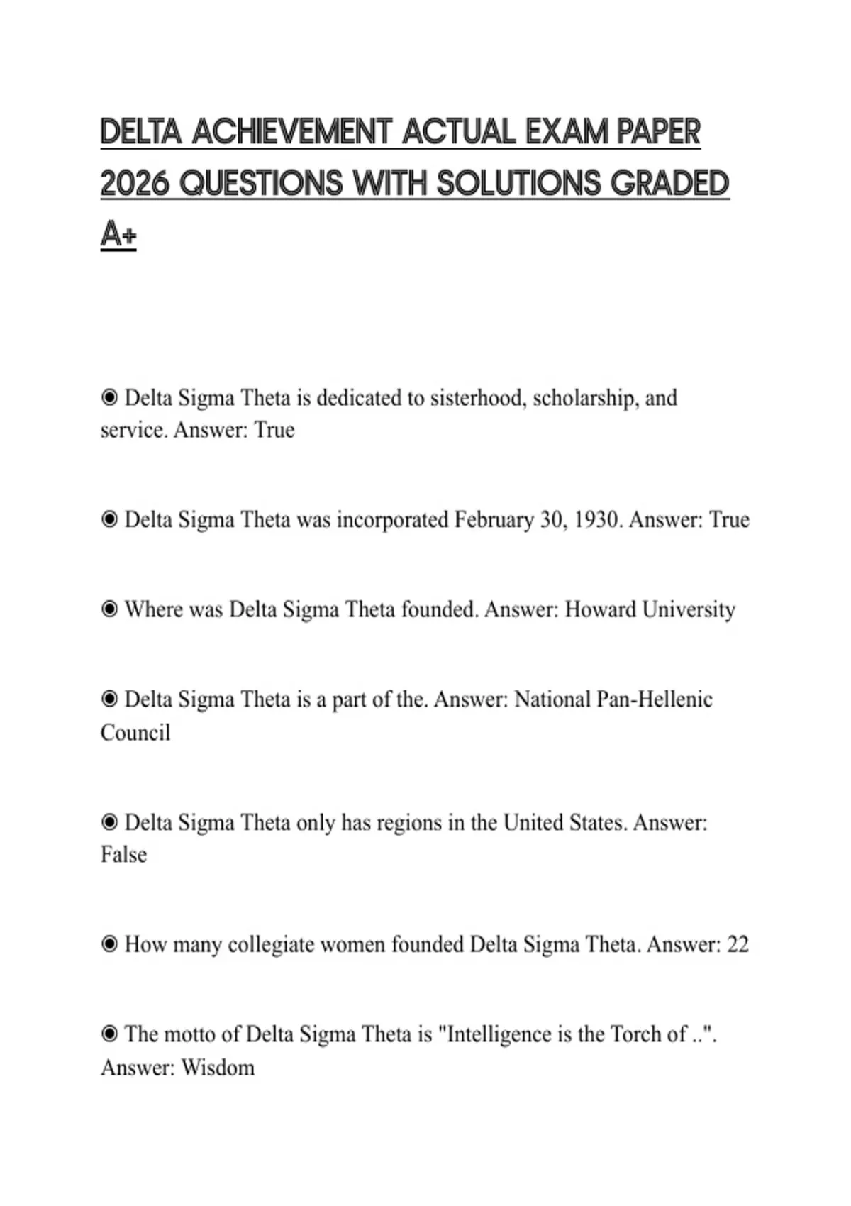 ◉ Delta Sigma Theta was incorporated February 30, 1930. Answer: True