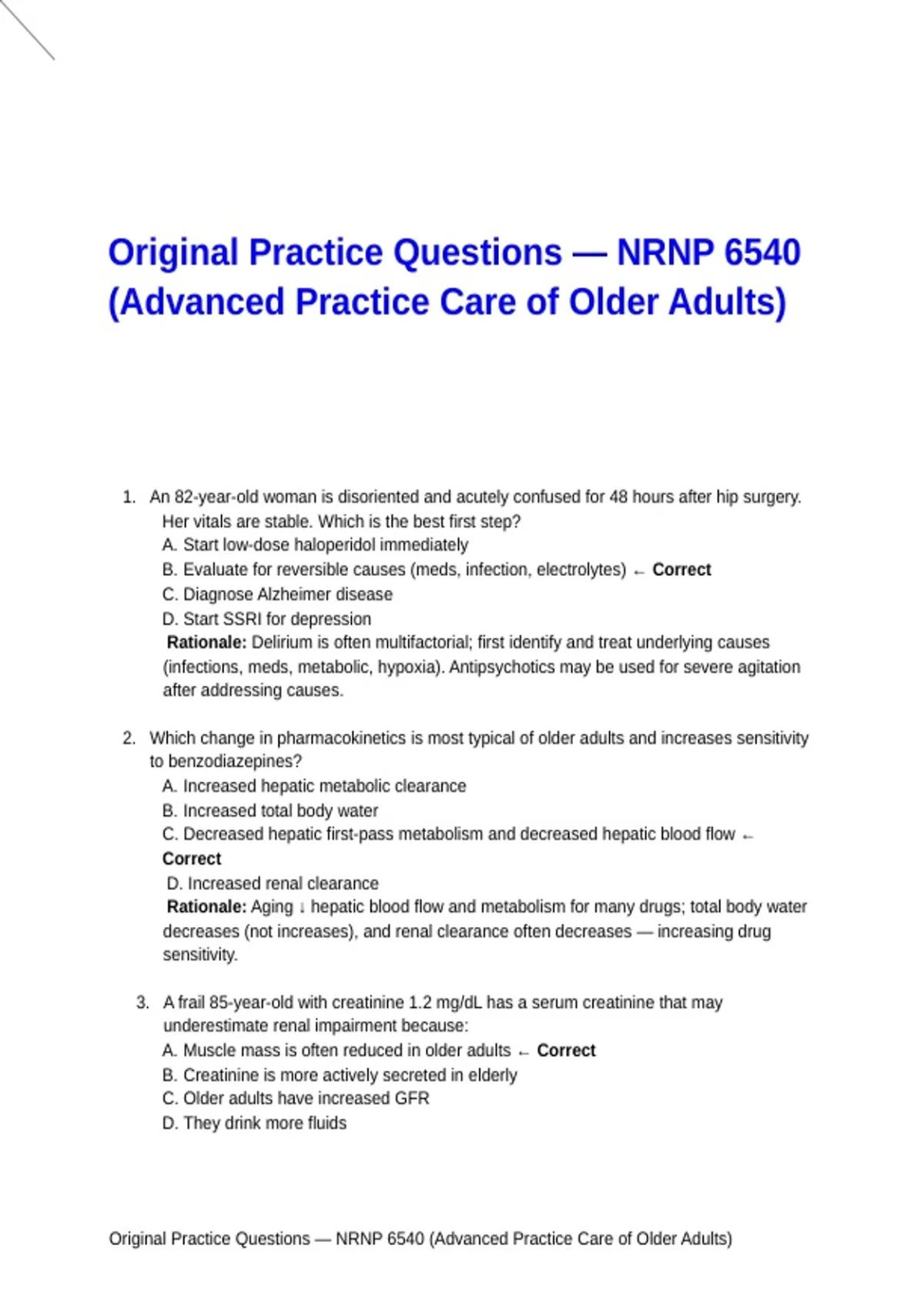 Original Practice Questions — NRNP 6540 (Advanced Practice Care of Older Adults)