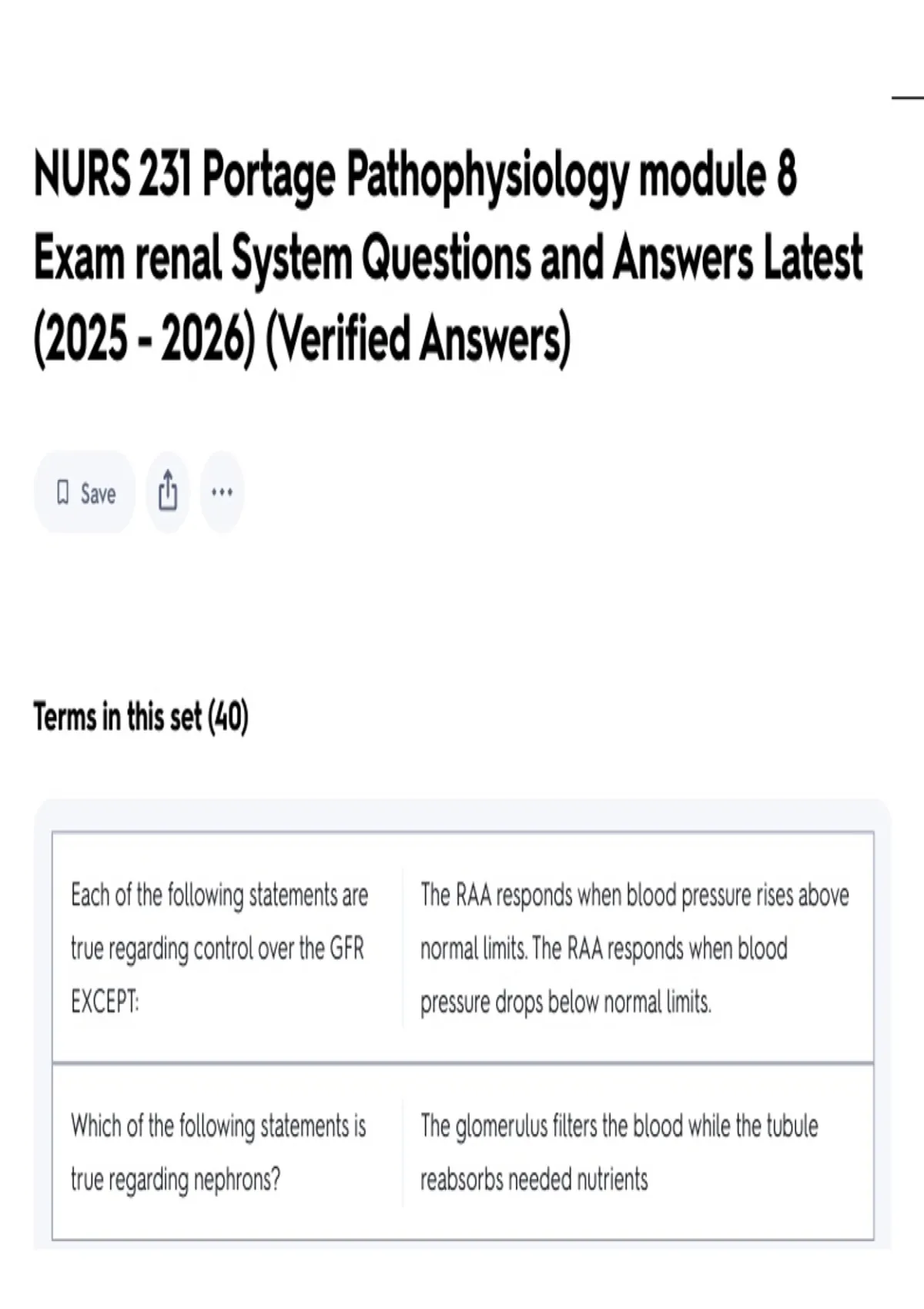 NURS 231 Portage Pathophysiology module 8 Exam renal System Questions and Answers Latest () (Verified Answers)