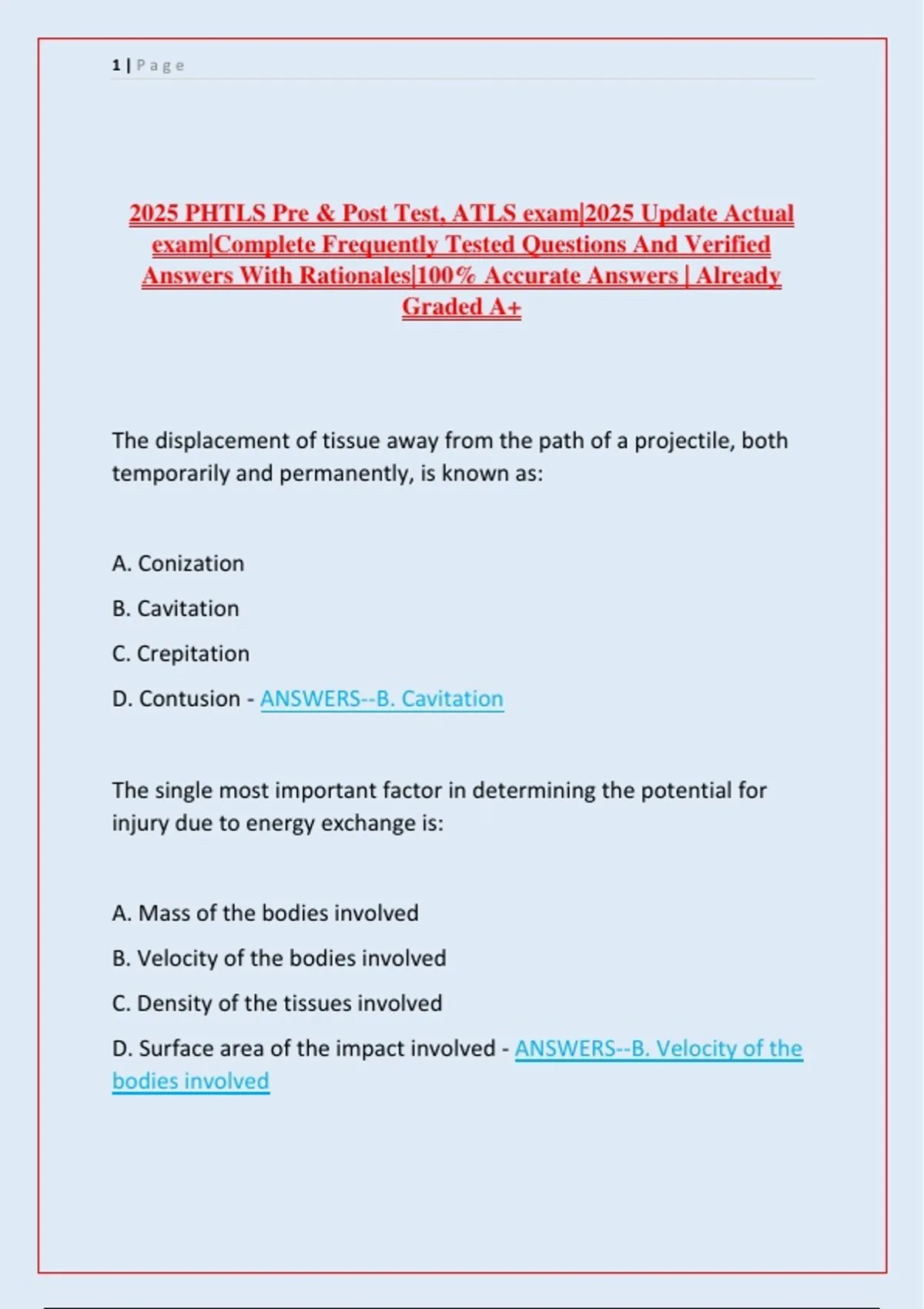 D. Contusion - ANSWERS--B. Cavitation
