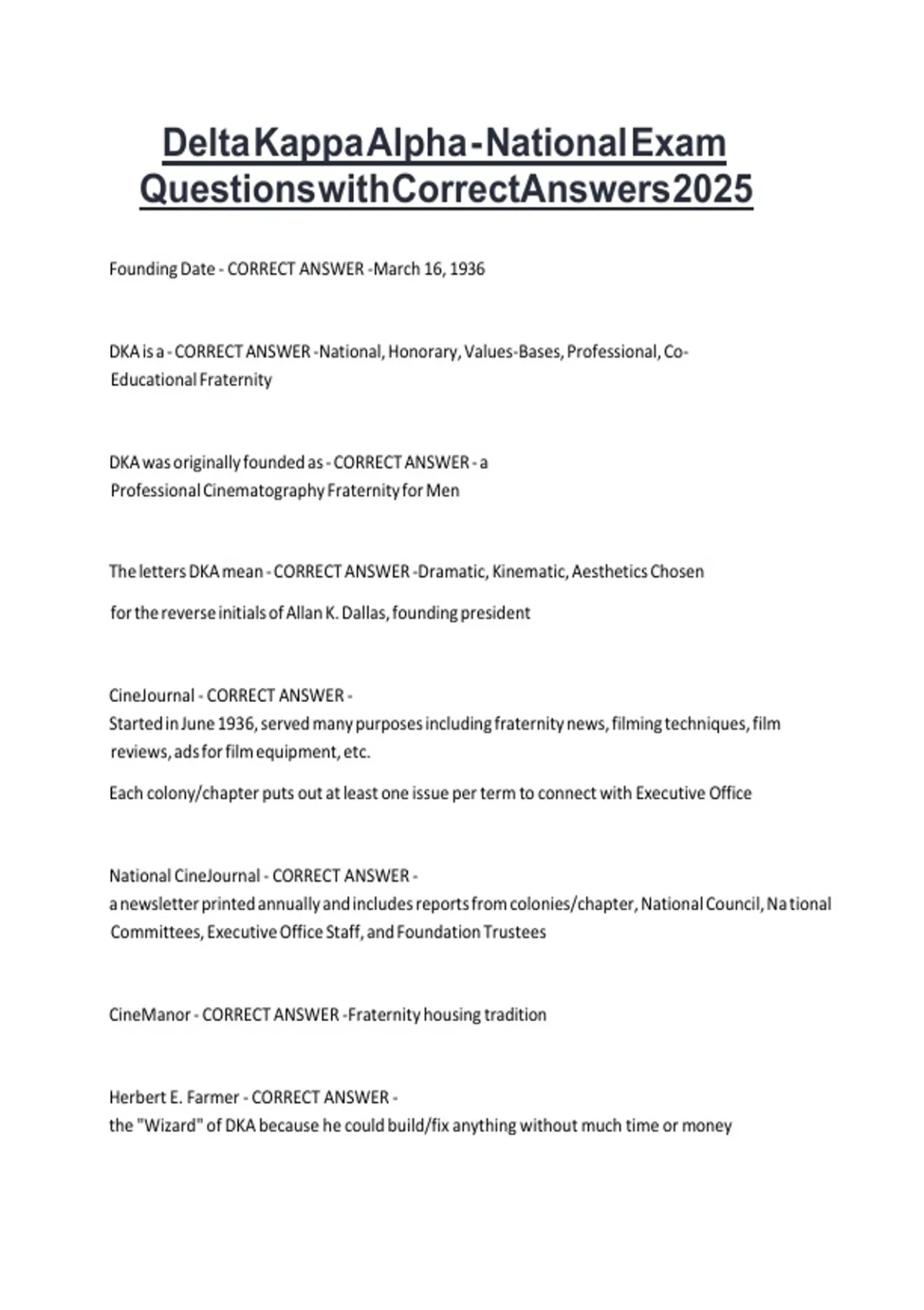 Delta Kappa Alpha - National Exam Questions with Correct Answers