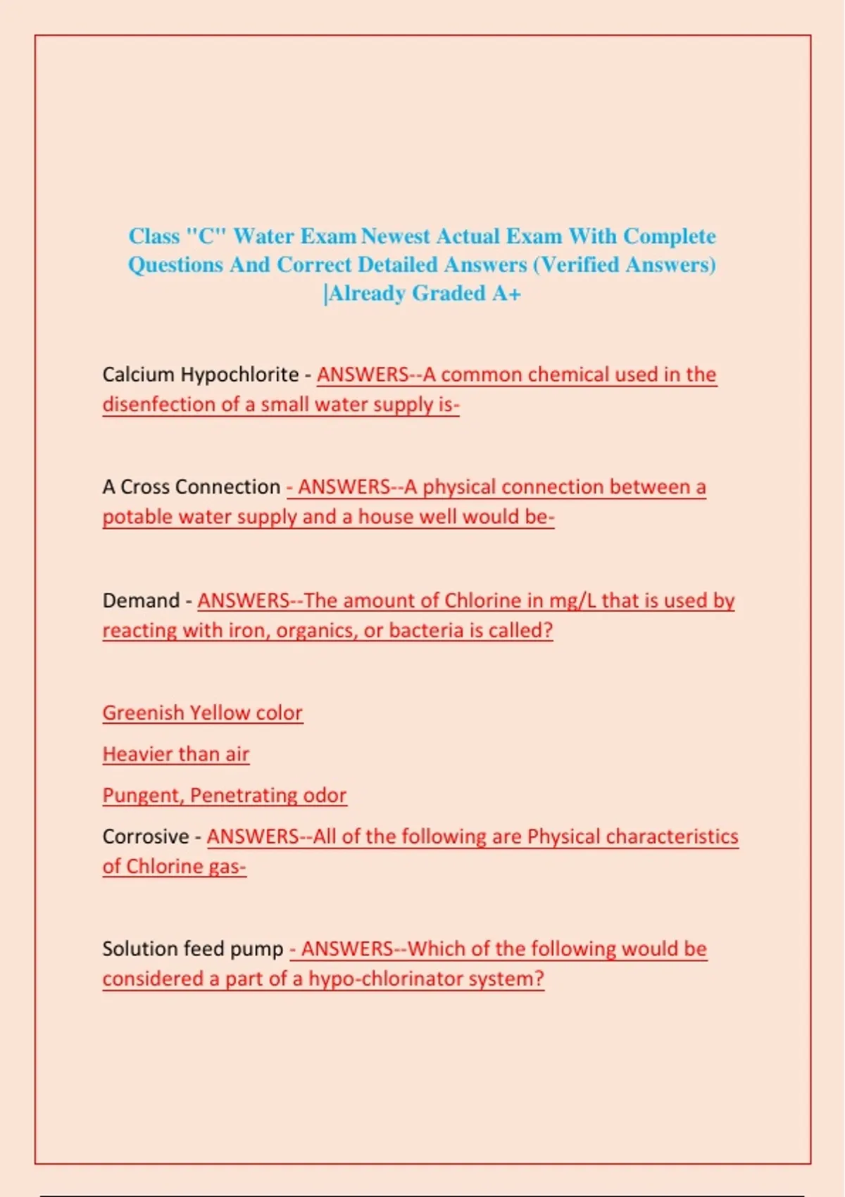 Class C Water Operator Exam – Complete Study Guide with Verified Answers" Description: