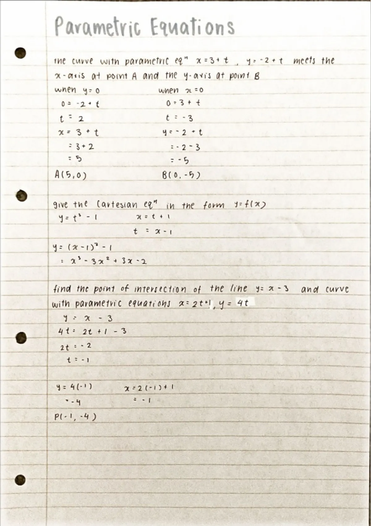 A Level Mathematics - Parametric Equations (summary)