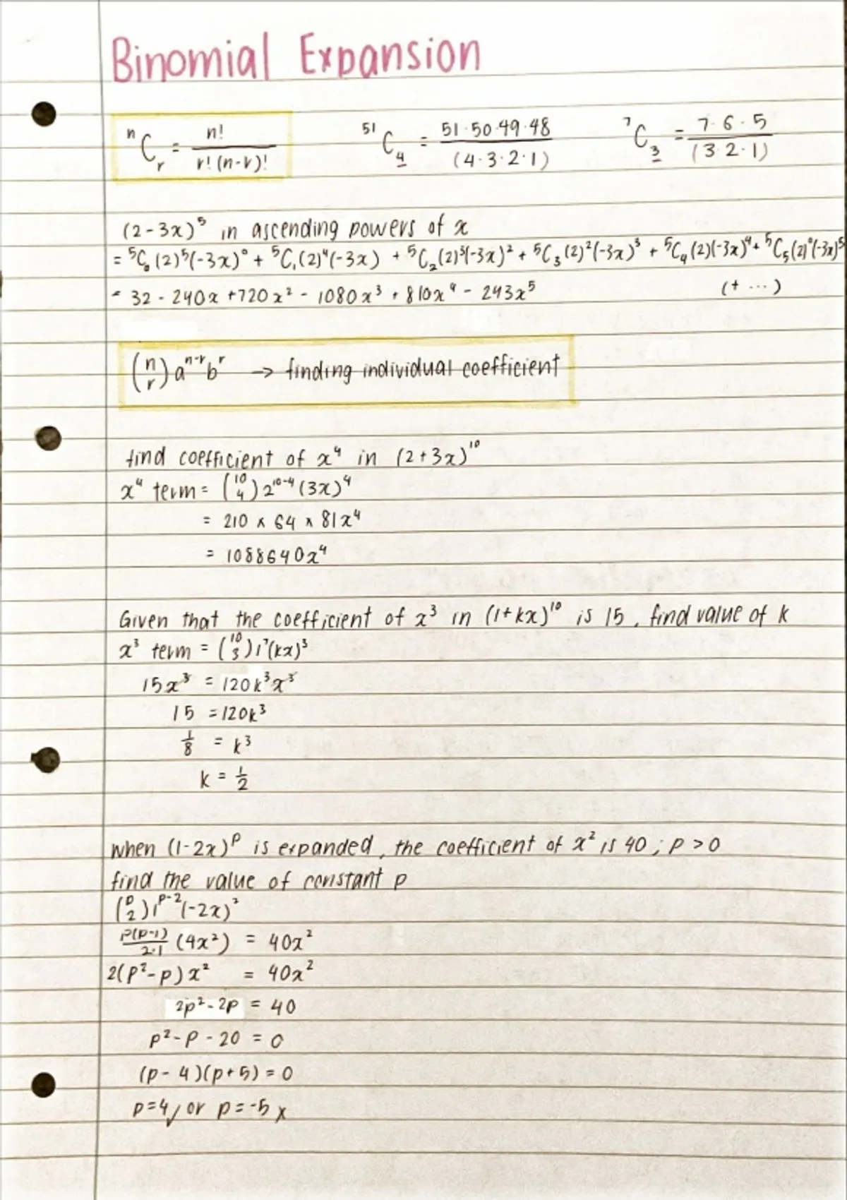 Here's a handwritten, nicely laid out summary of the Binomial Expansion topic (both Y1 and Y2 included) in A Level Mathematics! Hope that this summary helps you understand the concepts more easily!