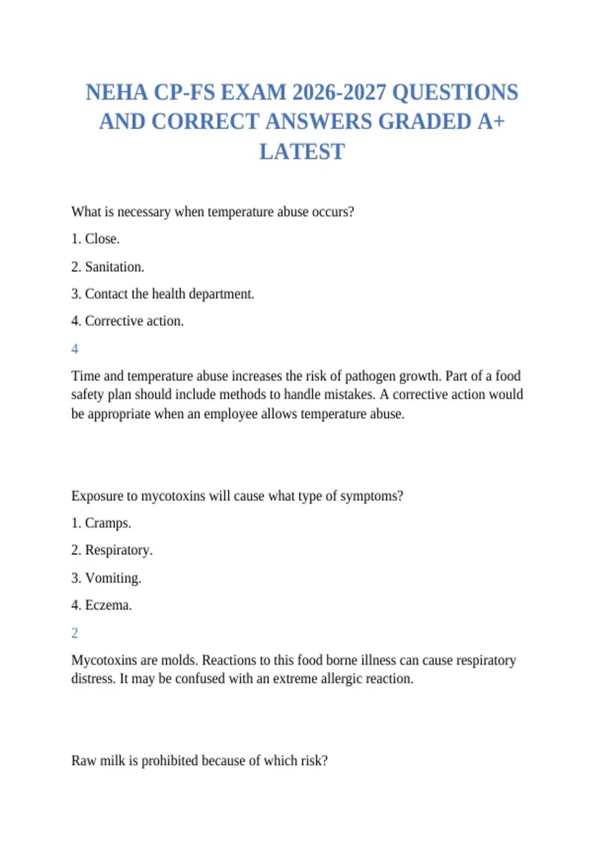 NEHA CP-FS EXAM QUESTIONS AND CORRECT ANSWERS GRADED A+ LATEST