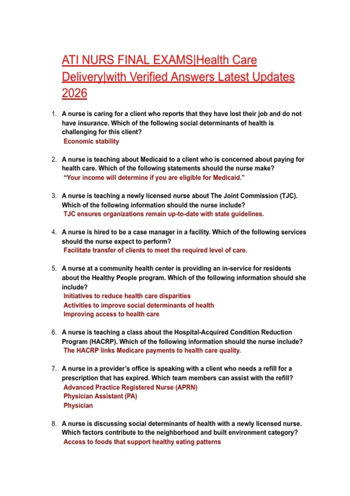 2. A nurse is teaching about Medicaid to a client who is concerned about paying for