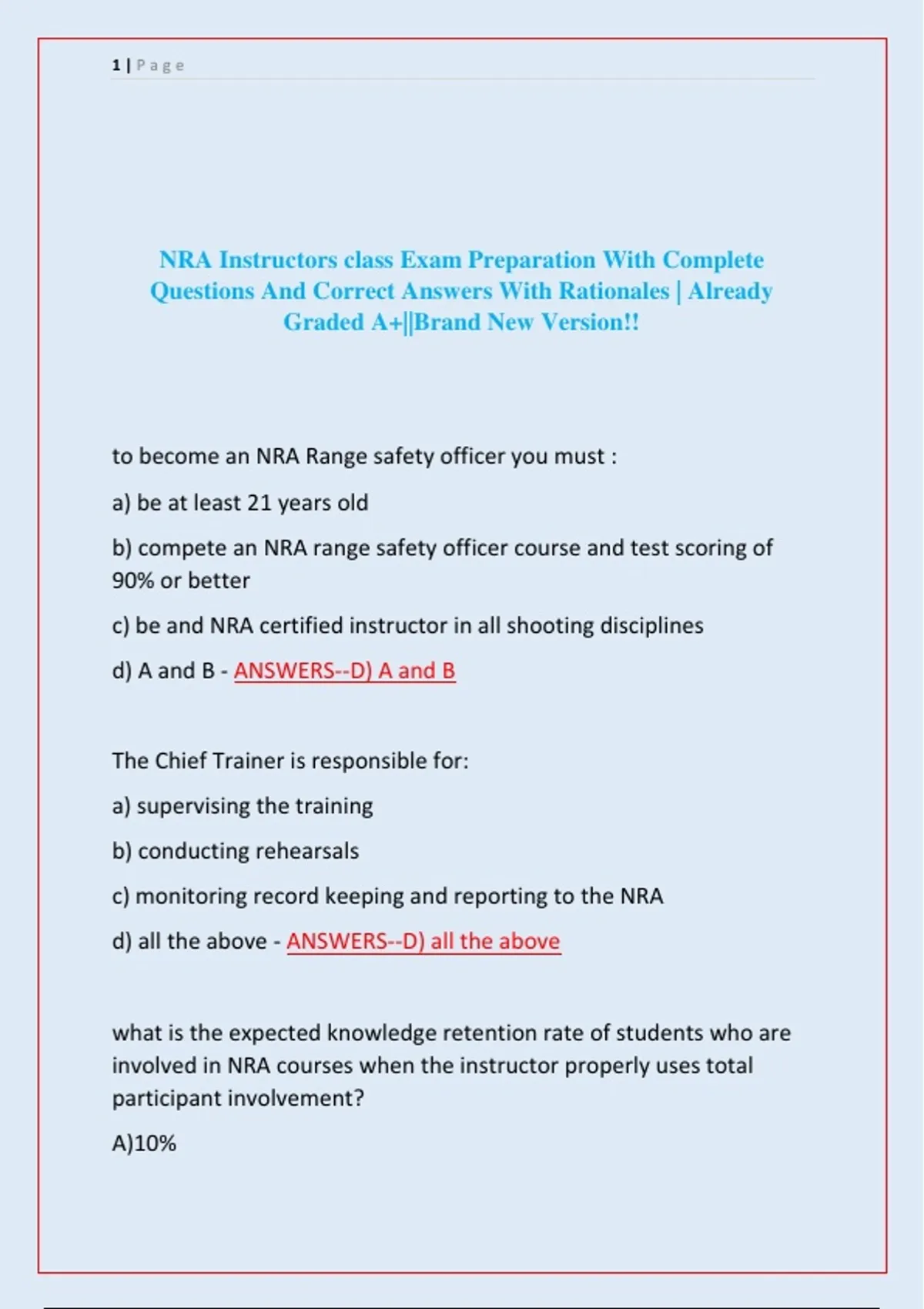 Title: NRA Instructor Exam Mastery: Complete Q&A Guide with Rationales | Guaranteed A+ Score