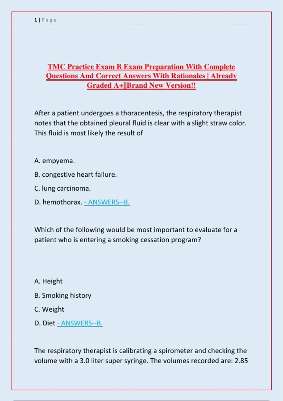TMC Practice Exam B: Complete Mastery Kit with Rationales & Correct Answers – Brand New Version | Graded A+!