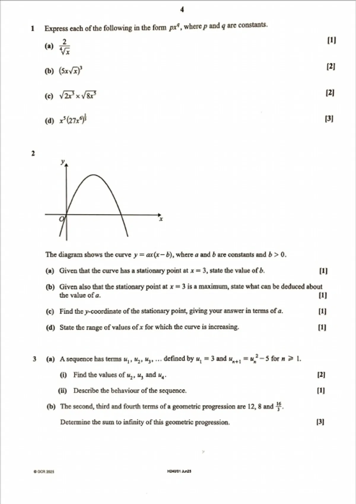 OCR A-LEVEL MATHEMATICS A PAPER 1 2025