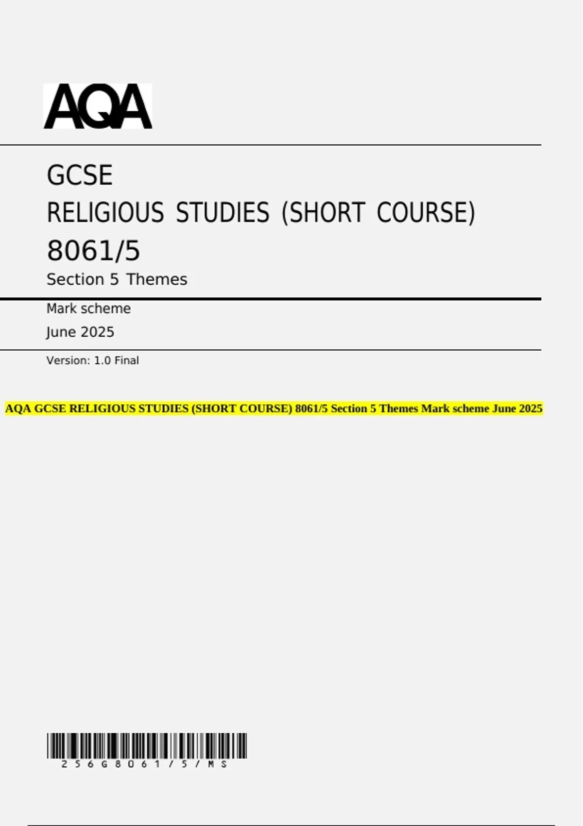 AQA GCSE RELIGIOUS STUDIES (SHORT COURSE) 8061/5 Section 5 Themes Mark scheme June 2025