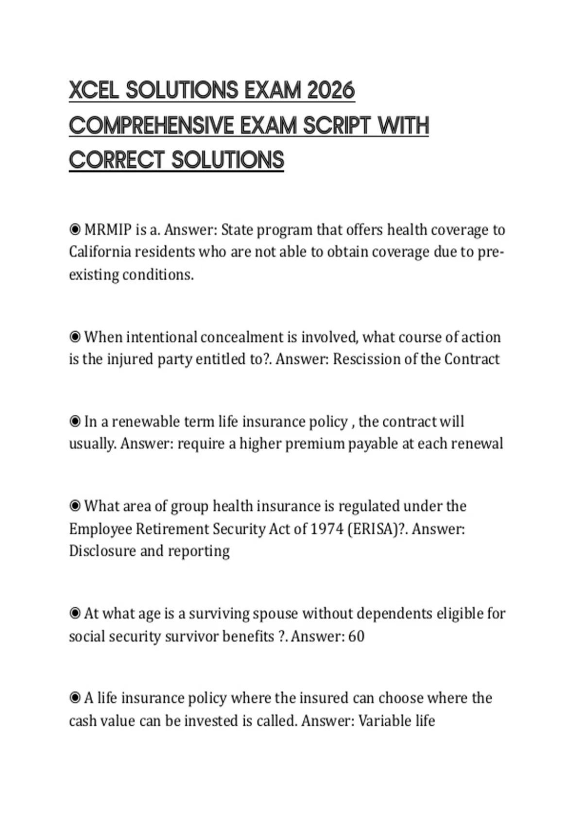 XCEL SOLUTIONS EXAM 2026 COMPREHENSIVE EXAM SCRIPT WITH CORRECT SOLUTIONS