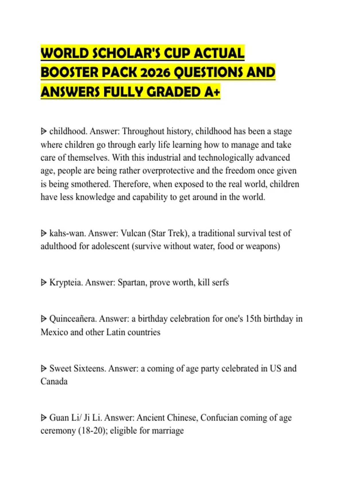 WORLD SCHOLAR'S CUP ACTUAL BOOSTER PACK 2026 QUESTIONS AND ANSWERS FULLY GRADED A+