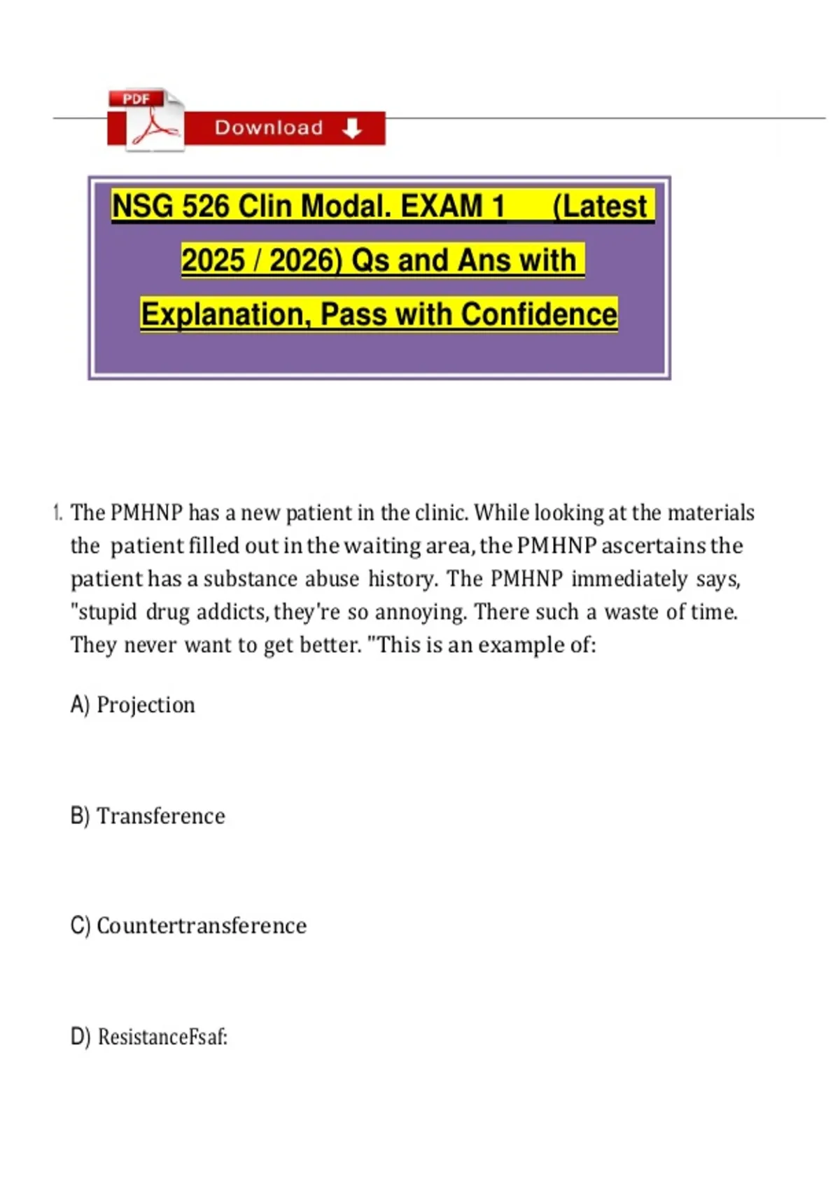 NSG 526 Clin Modal. EXAM 1 (Latest 2025 / 2026) Qs and Ans with Explanation, Pass with Confidence