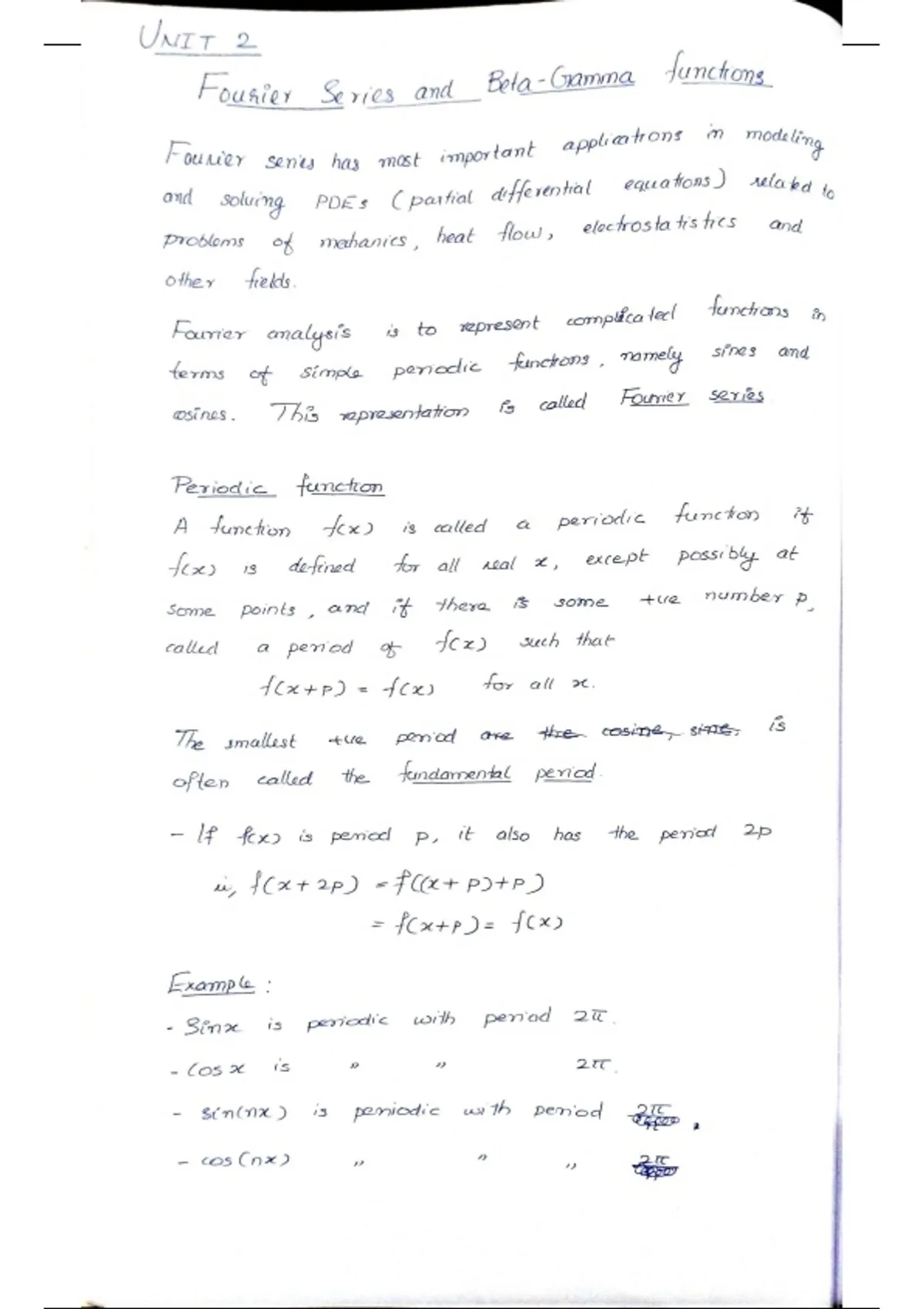 this document contains engineering calculus notes covering fouries series , beta and gamma functions