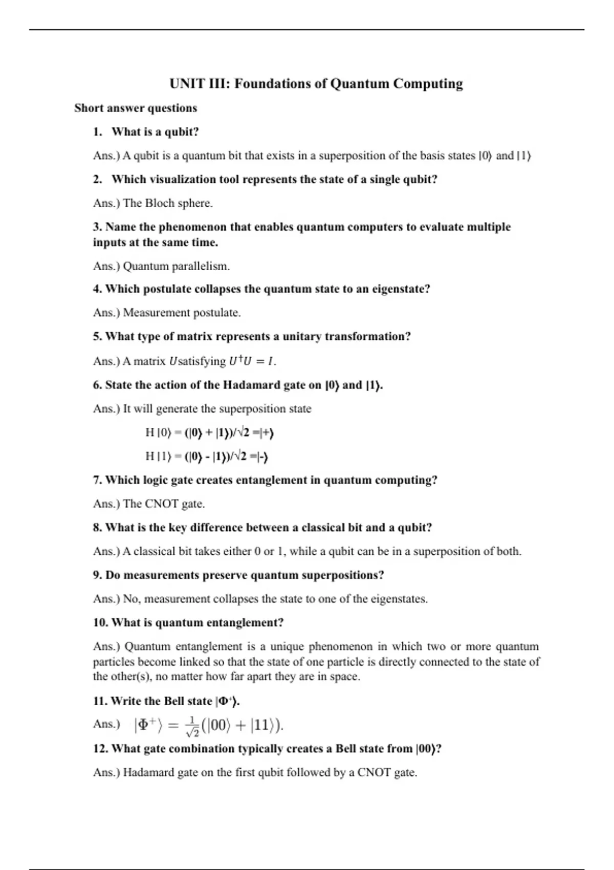 This document contains detailed questions and answers related to foundations of quantum computing . this notes is very much helpful for quick revision