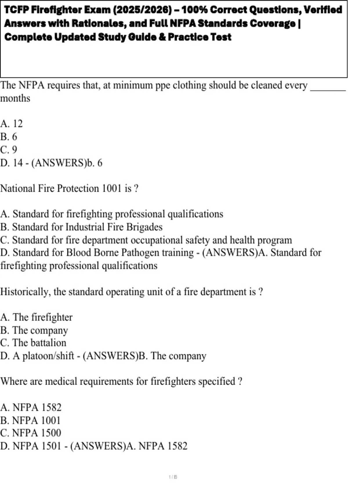 TCFP Firefighter Exam (2025/2026) – 100% Correct Questions, Verified Answers with Rationales, and Full NFPA Standards Coverage | Complete Updated Study Guide & Practice Test