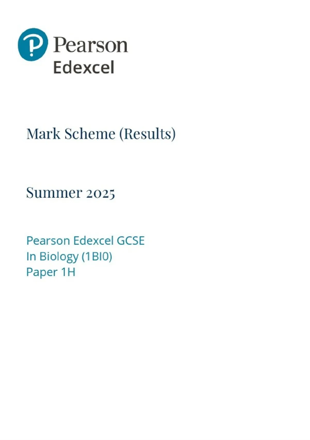 GCSE EDEXCEL 2025 BIOLOGY HIGHER TIER PAPER 1H MARK SCHEME