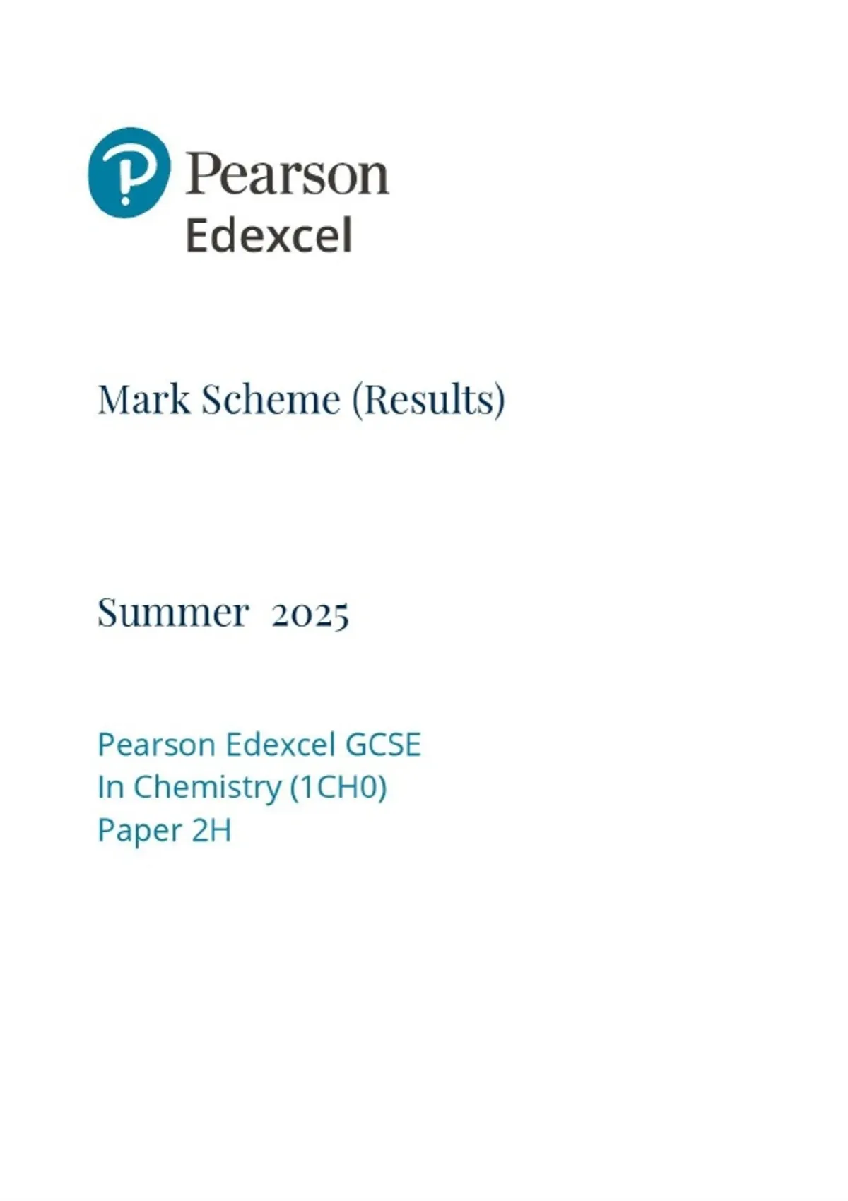 GCSE EDEXCEL 2025 CHEMISTRY HIGHER TIER PAPER 2H MARK SCHEME