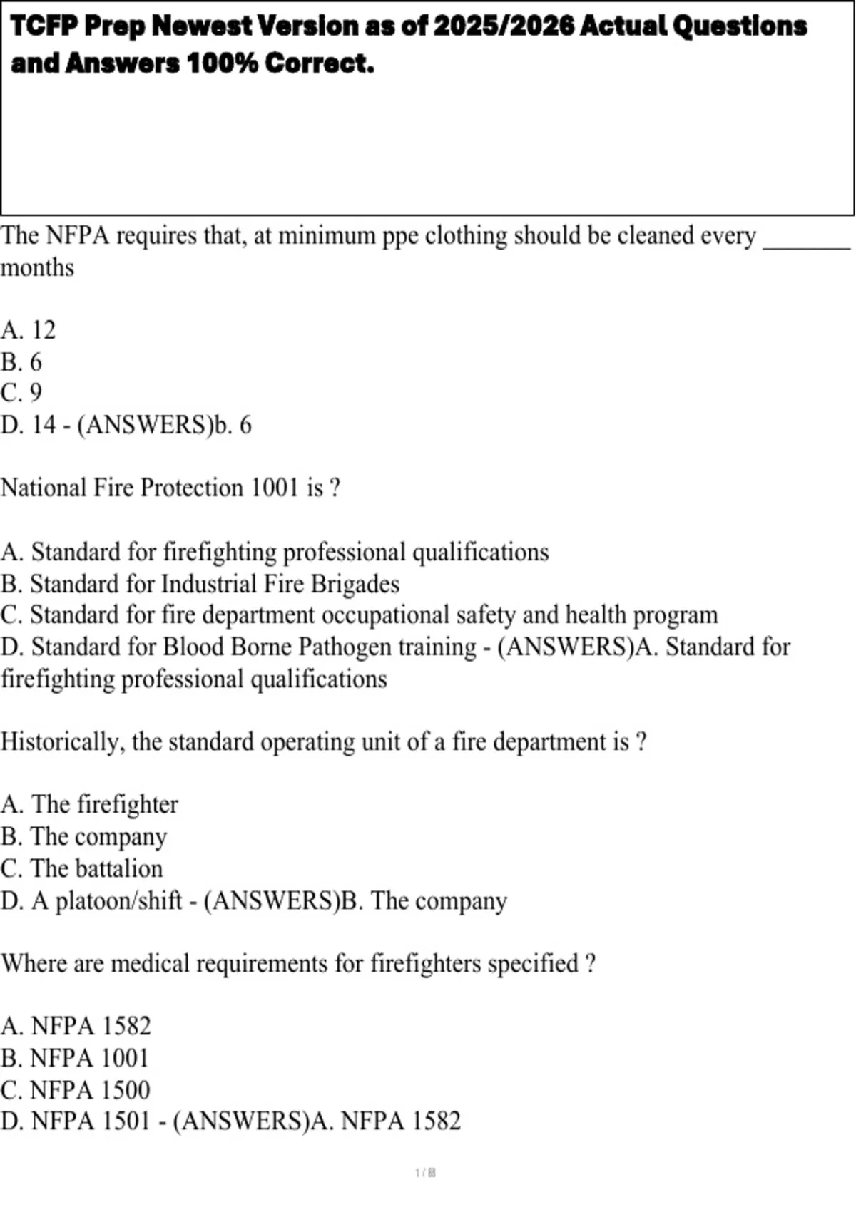 D. NFPA 1501 - (ANSWERS)A. NFPA 1582