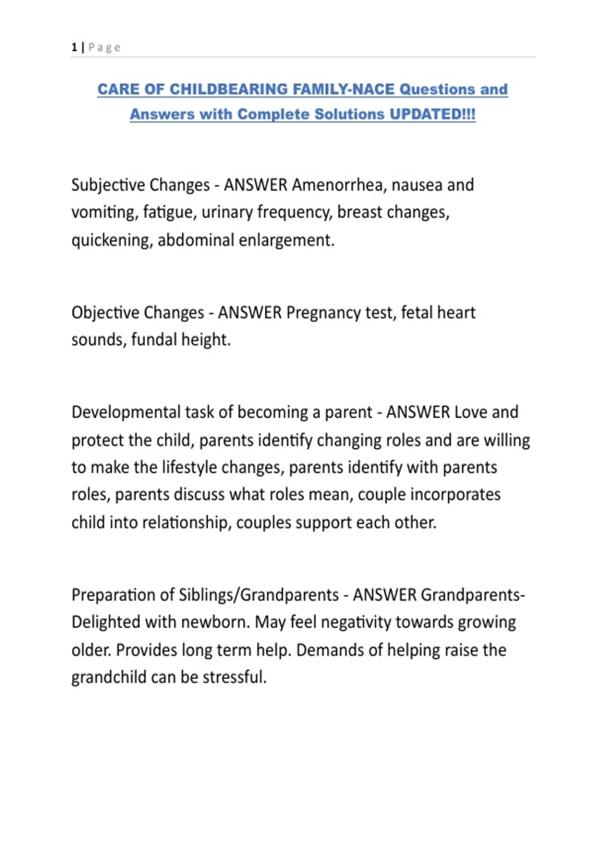 Preparation of Siblings/Grandparents - ANSWER Grandparents-