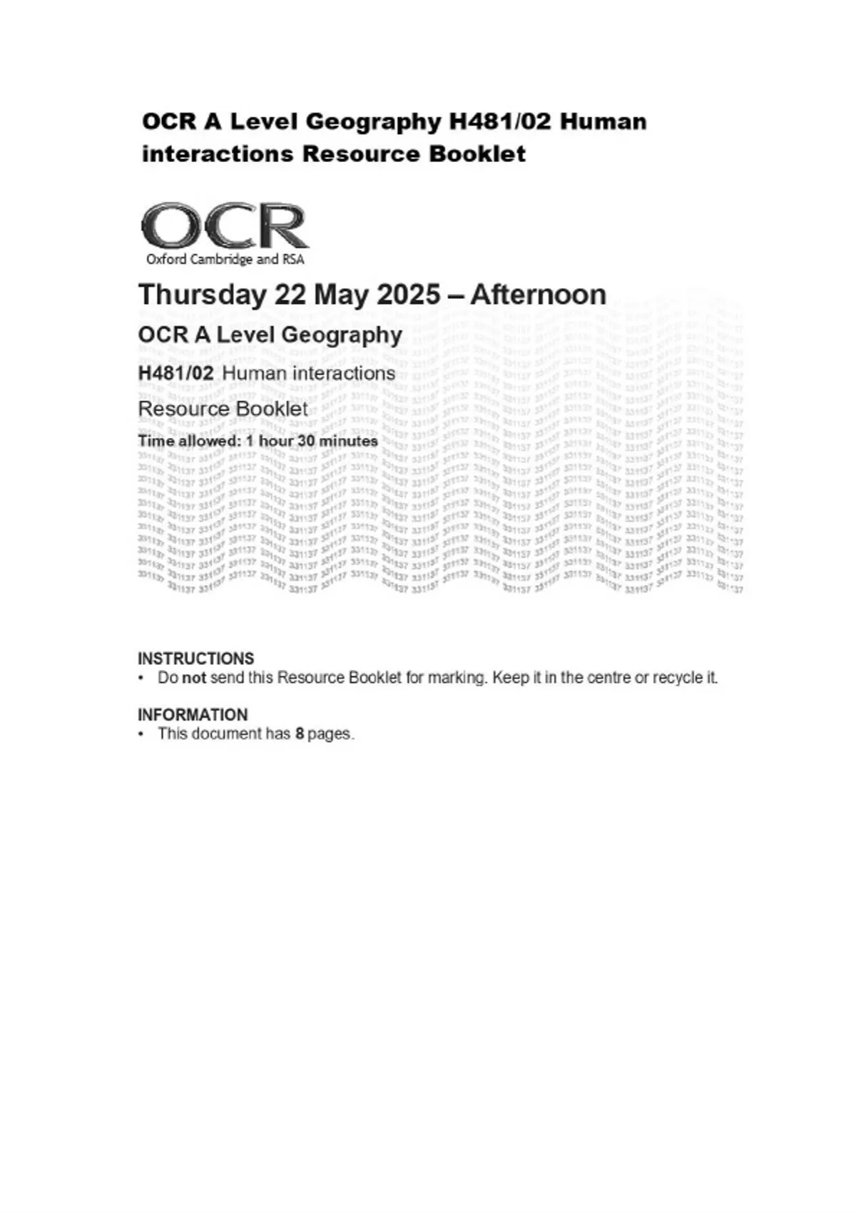 OCR A Level Geography H481/02 Human interactions Resource Booklet