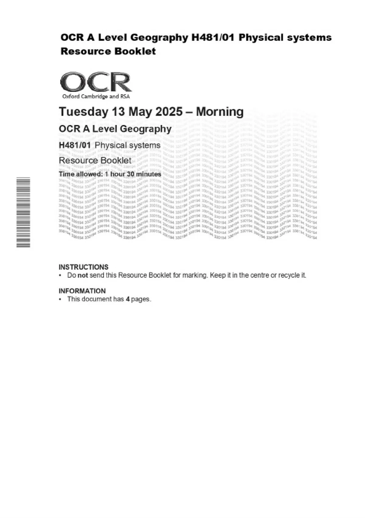 OCR A Level Geography H481/01 Physical systems Resource Booklet