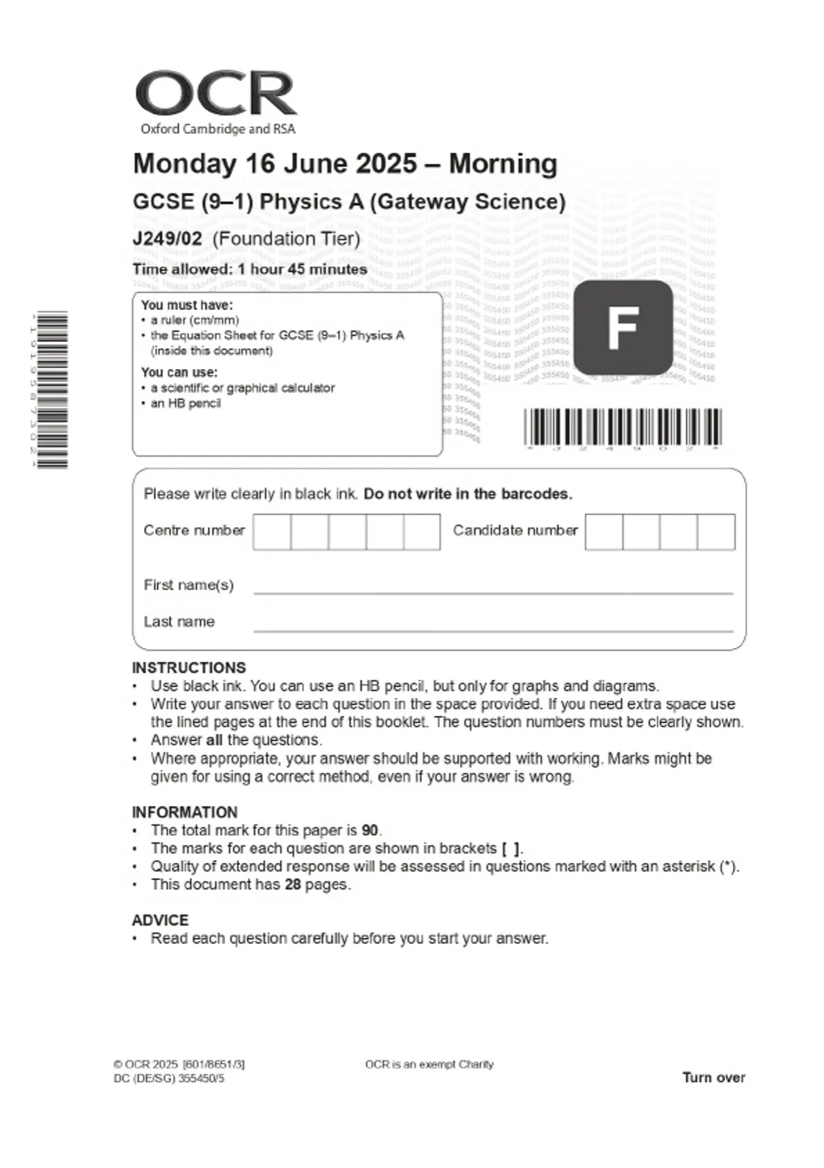 2025 OCR GCSE (9–1) Physics A (Gateway Science) J249/02 (Foundation Tier) Combined Question Paper & Final Marking Scheme