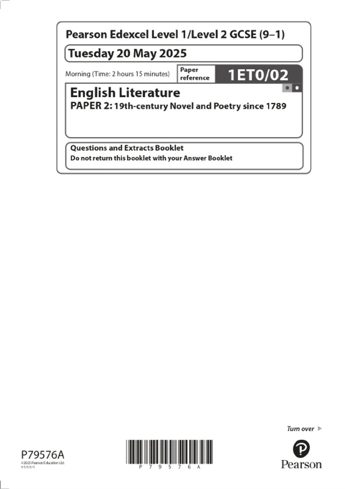 2025 Pearson Edexcel Level 1/Level 2 GCSE (9–1) English Literature PAPER 2: 19th-century Novel and Poetry since 1789 Combined Question Paper & Marking Scheme