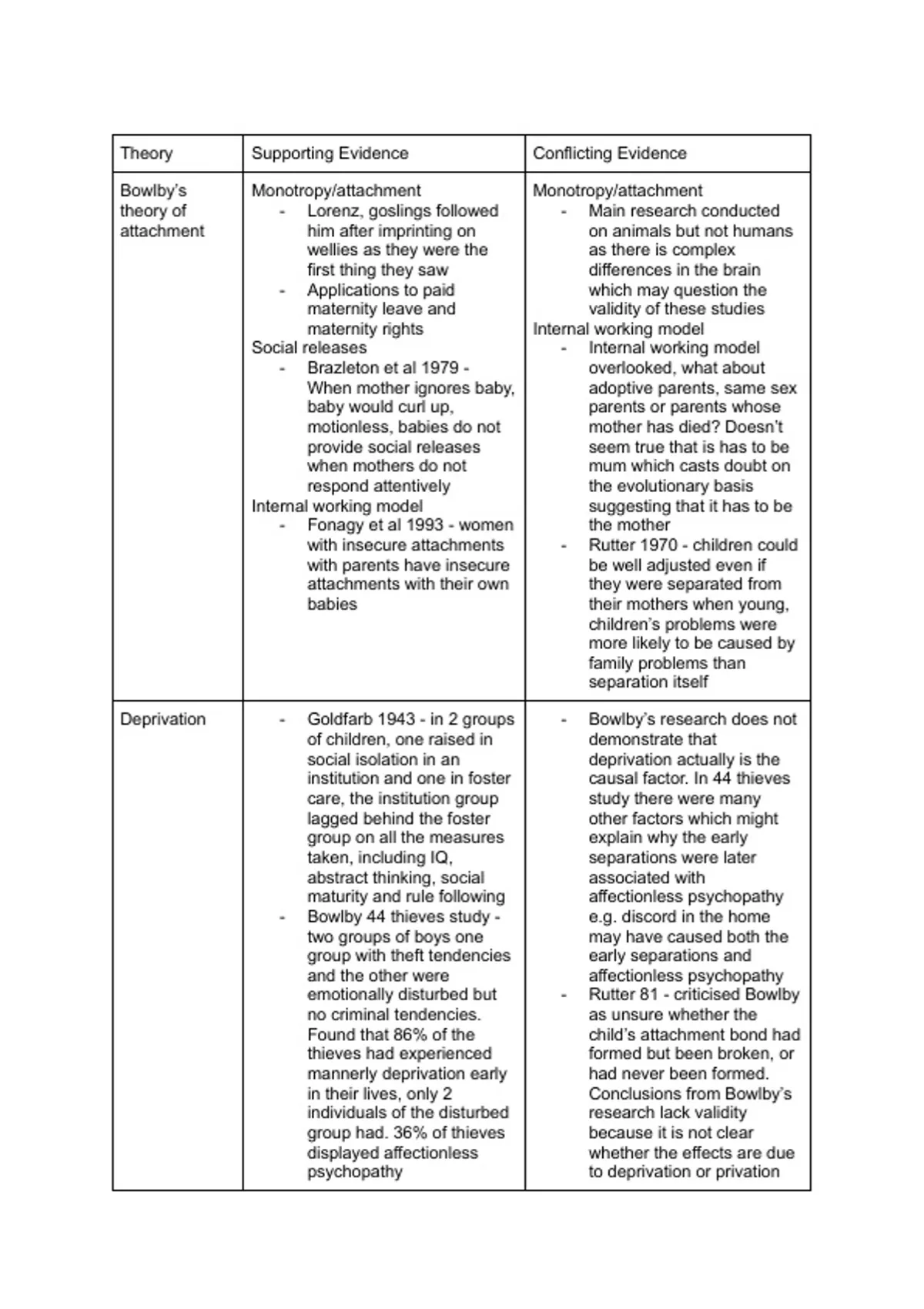 Deprivation - Goldfarb 1943 - in 2 groups - Bowlby’s research does not