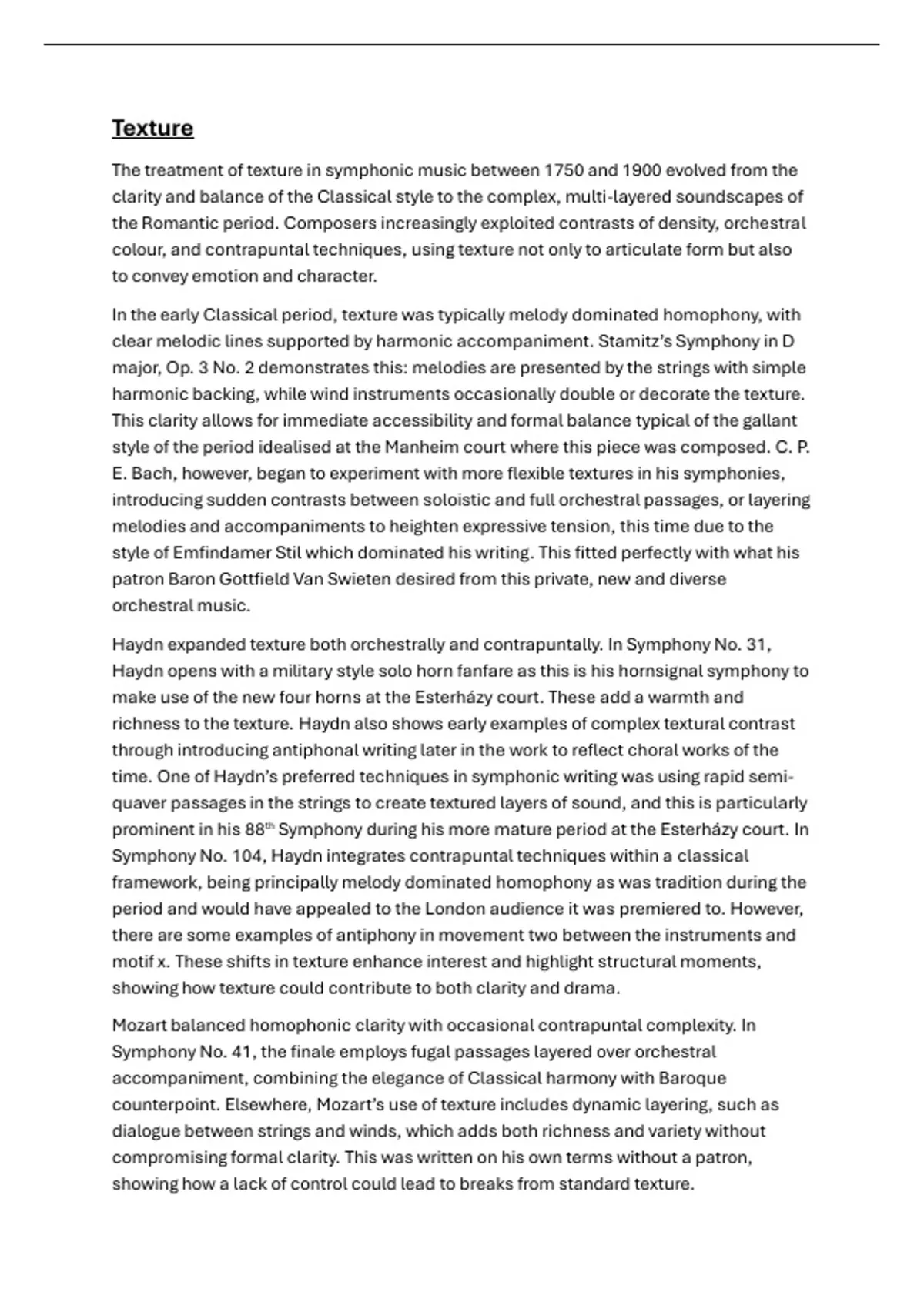 richness to the texture. Haydn also shows early examples of complex textural contrast