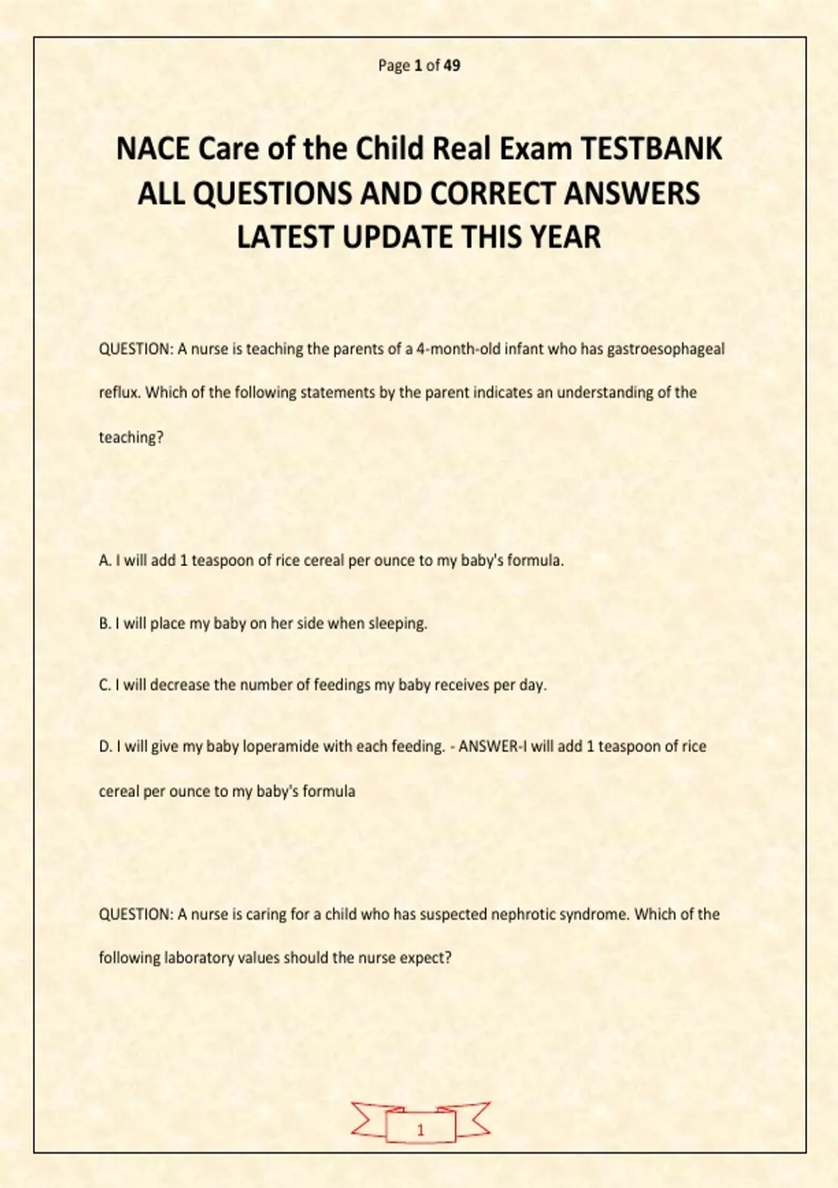 QUESTION: A nurse is caring for a child who has suspected nephrotic syndrome. Which of the