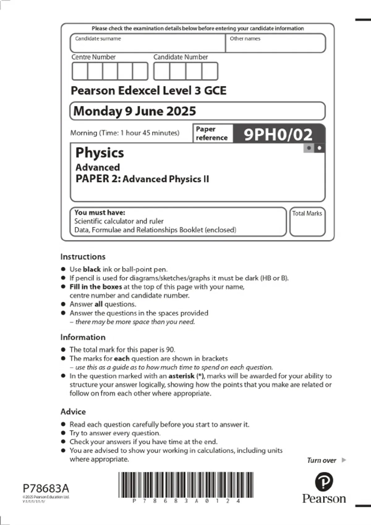 2025 pearson edexcel level 3 gce physics advanced