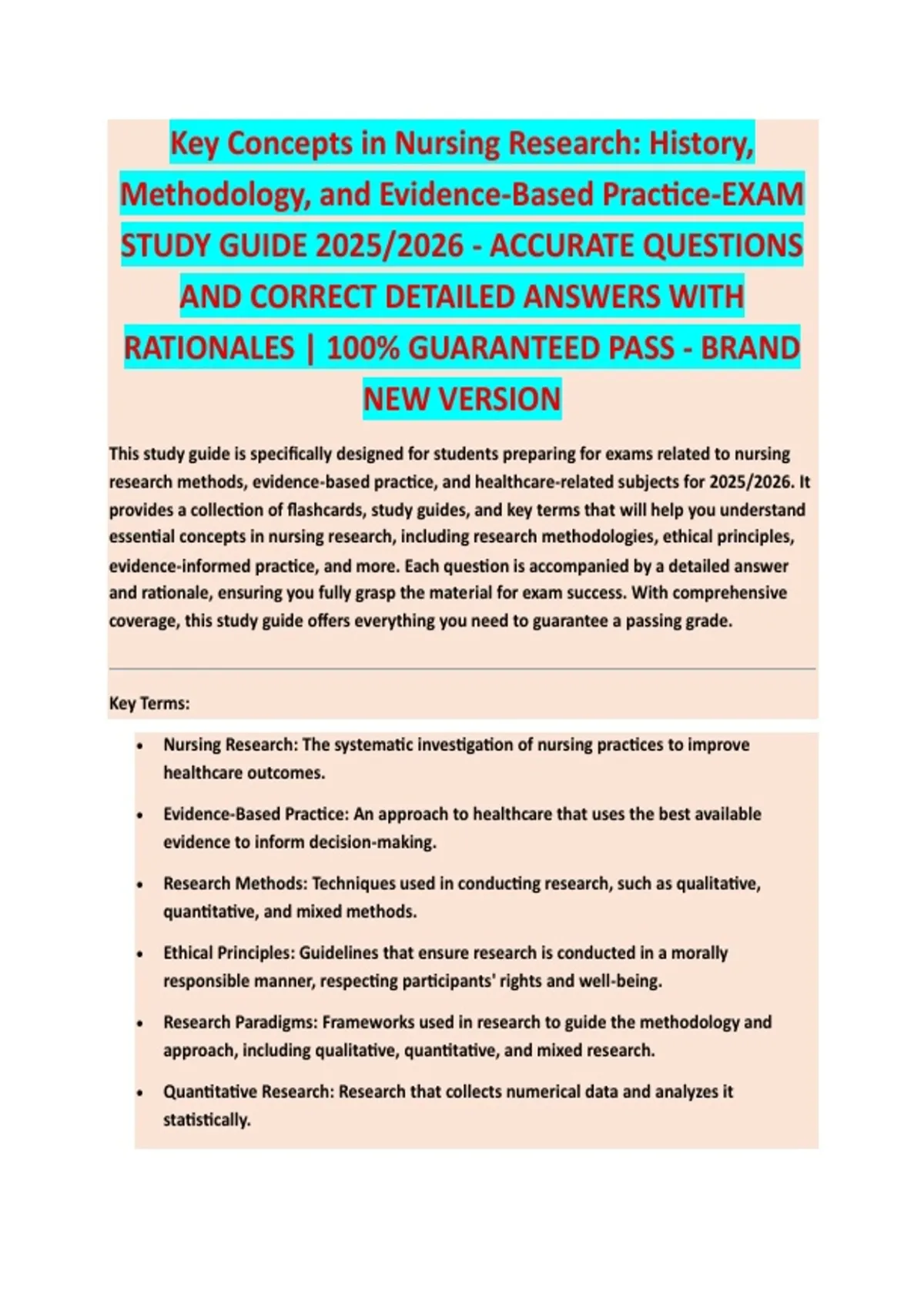 This study guide is specifically designed for students preparing for exams related to nursing