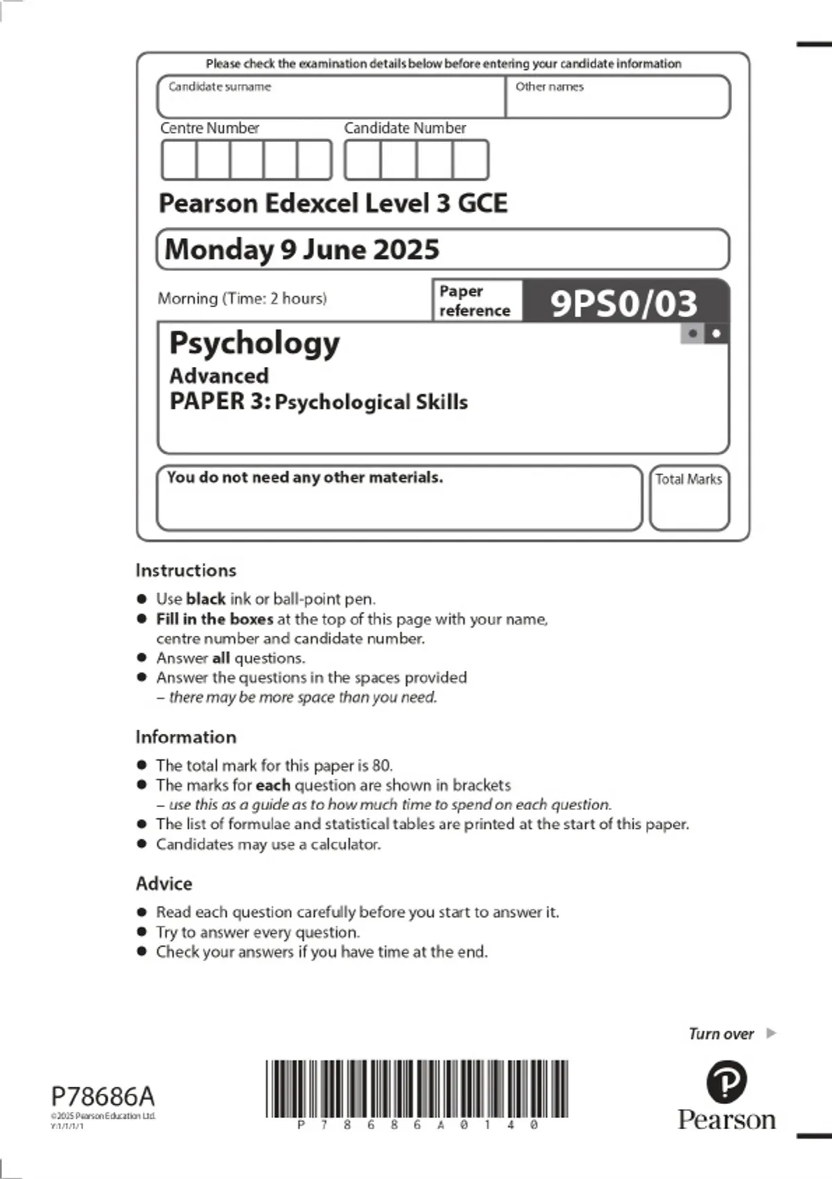 2025 pearson edexcel level 3 gce psychology advanc