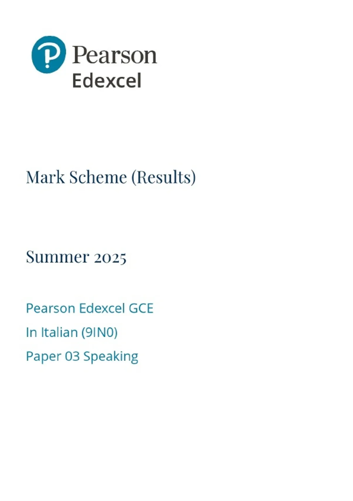 2025 Pearson Edexcel GCE In Italian (9IN0) Paper 03 Speaking Marking Scheme