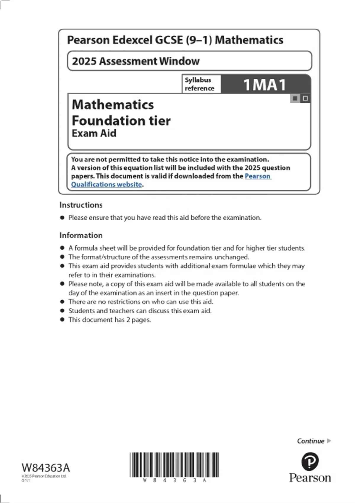 2025 Pearson Edexcel GCSE (9–1) Mathematics Foundation tier Exam Aid Combined Question Paper & Final Marking Scheme