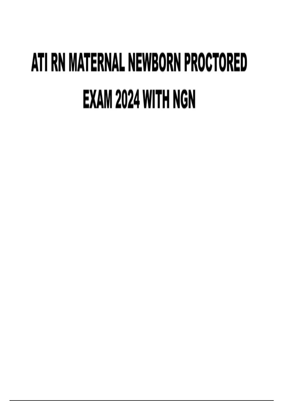 Prepare for the ATI RN Maternal Newborn Proctored Exam 2024 with NGN using this 2025/2026 guide with solution, featuring verified questions and answers designed to strengthen maternal-newborn nursing knowledge, improve clinical skills, and boost exam performance