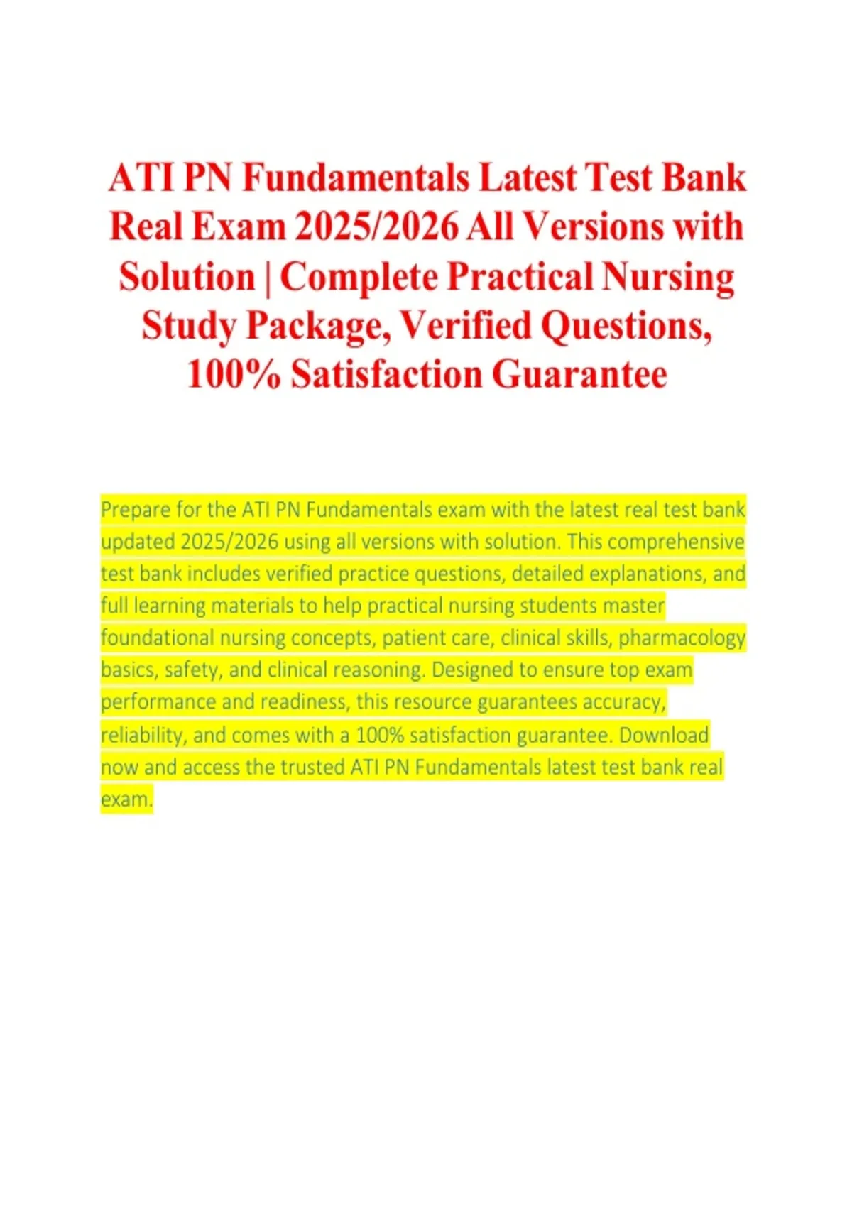 ,2026- Complete Exam Prep Bundle:ATI PN Fundamentals