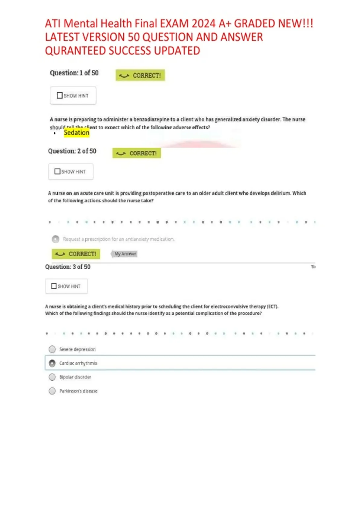 ATI Mental Health Final EXAM 2024 ATI Mental Health Final EXAM 2024.pdf ? Verified answers with rationales for learning retention