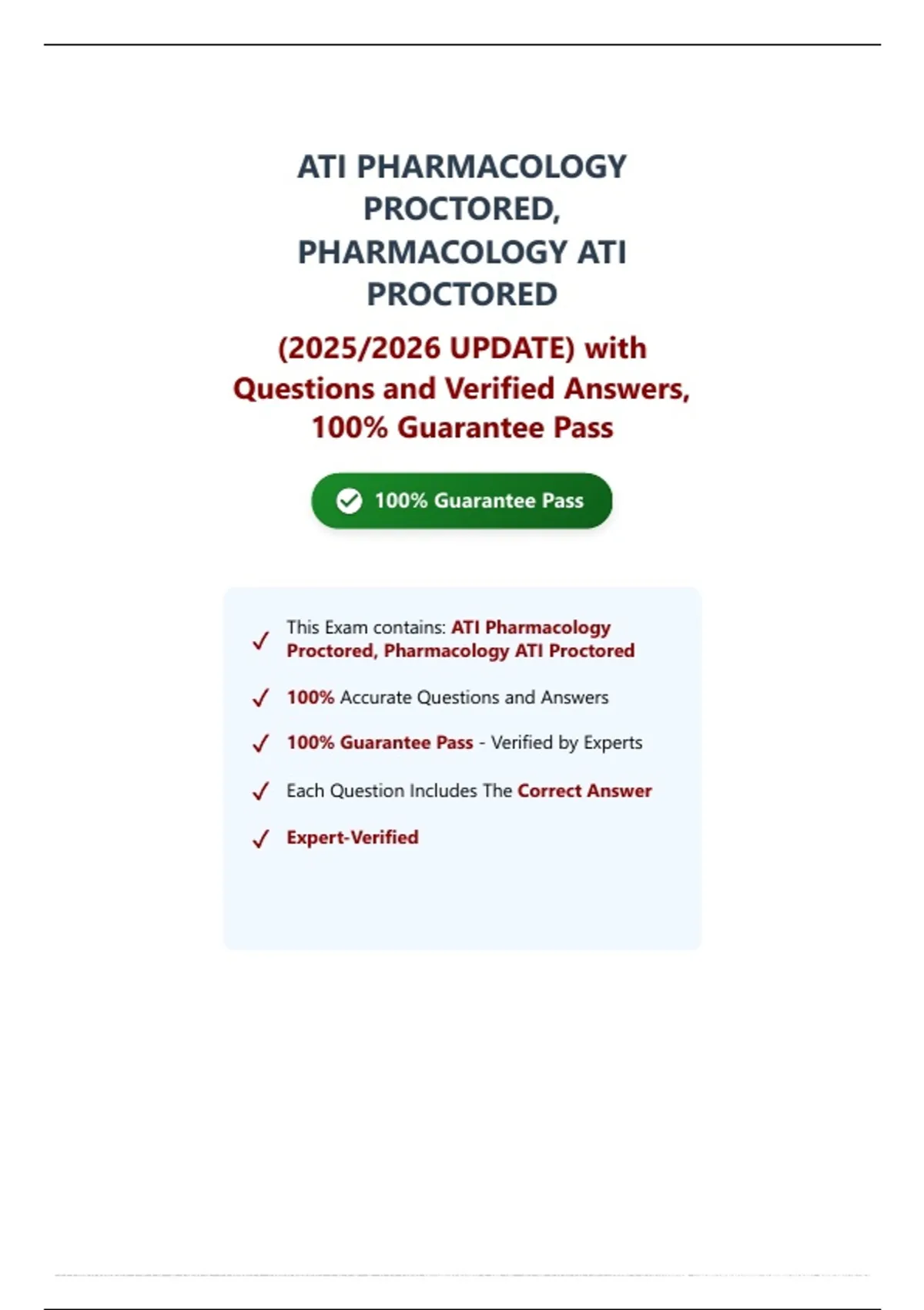 ATI PHARMACOLOGY PROCTORED, PHARMACOLOGY ATI PROCTORED