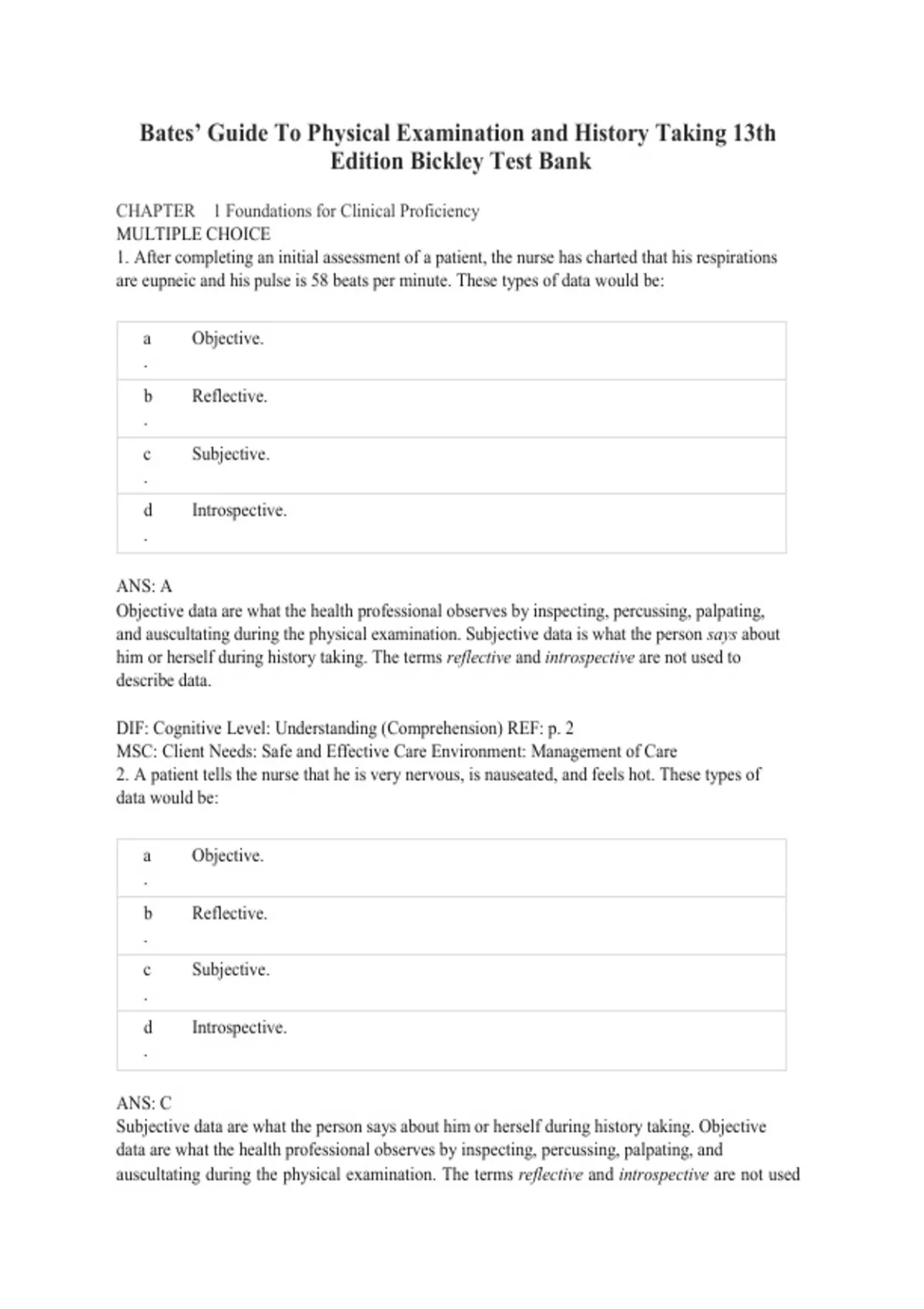 Bates’ Guide To Physical Examination and History Taking 13th Edition Bickley