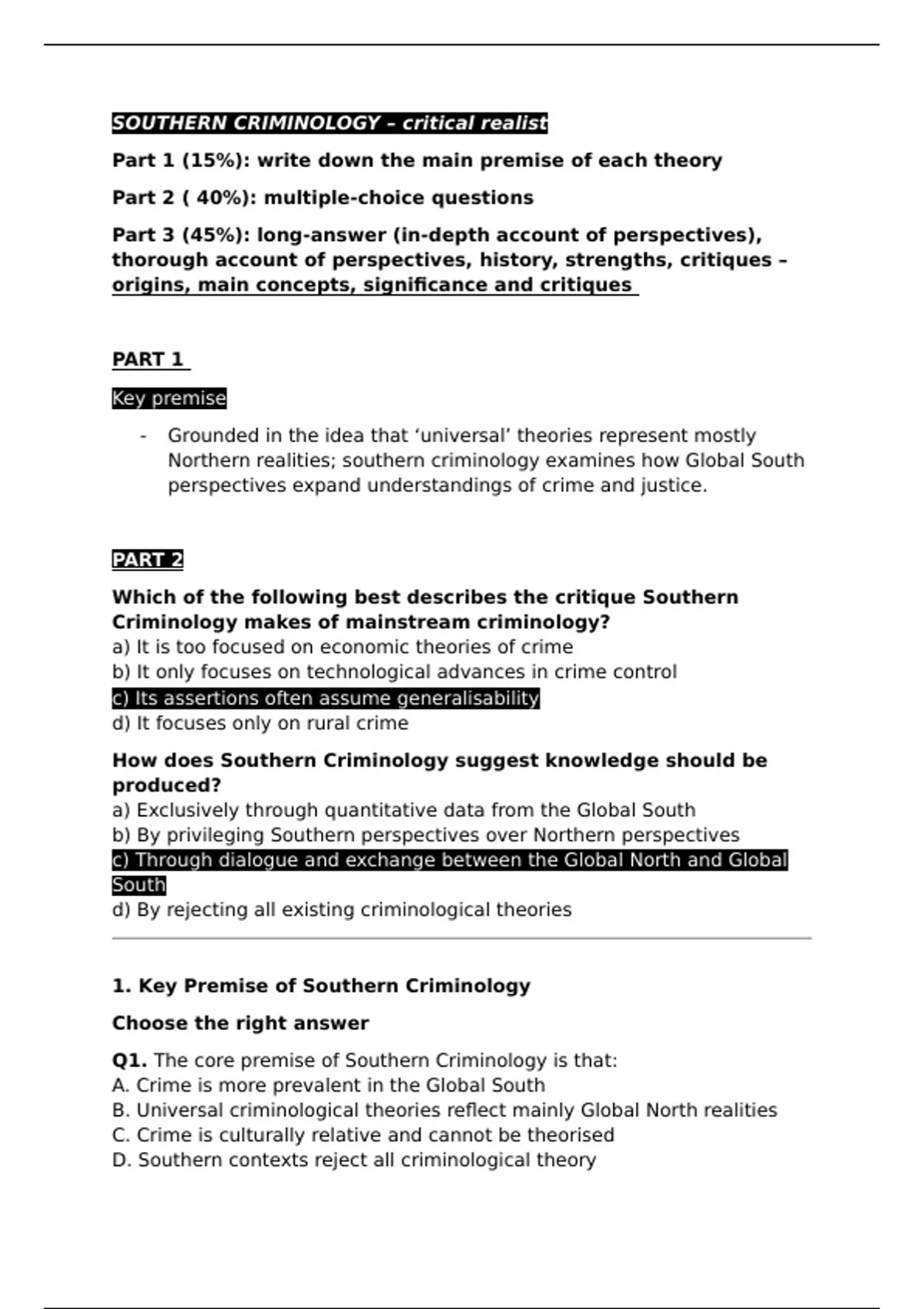 Q2. Southern Criminology challenges mainstream criminology by arguing