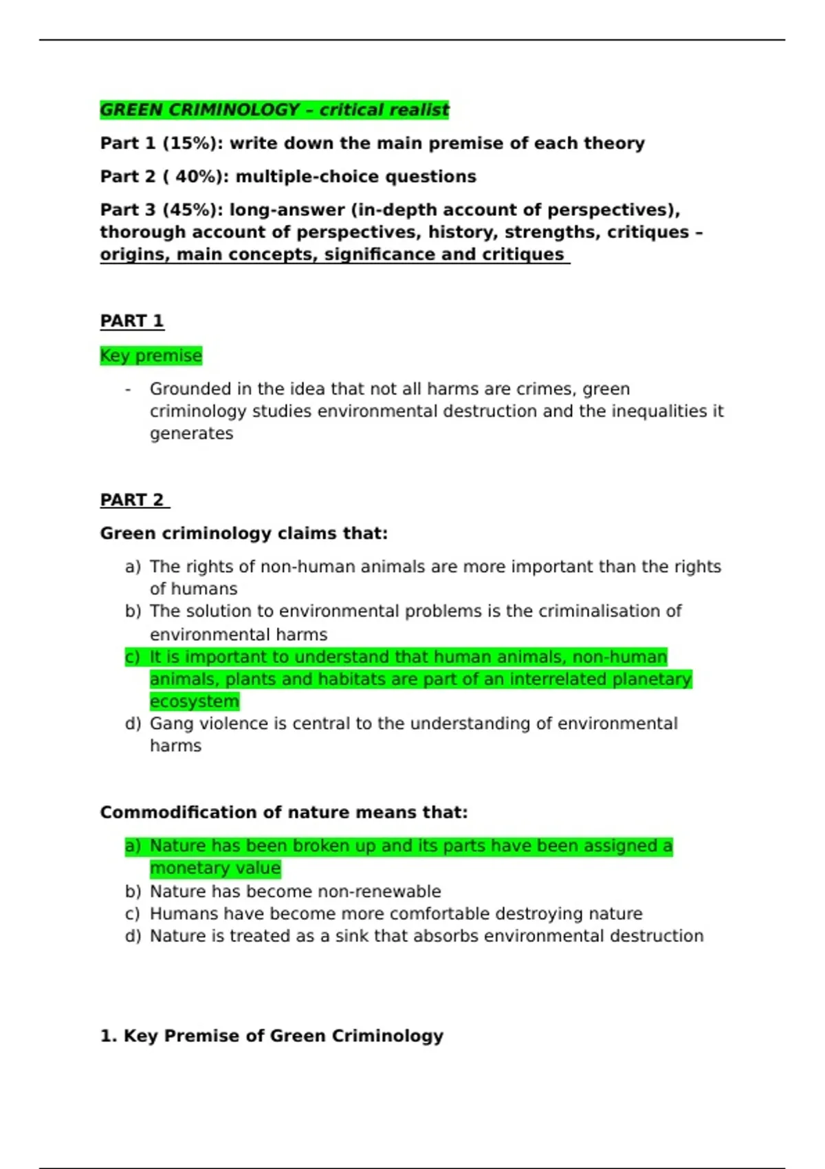 1. Key Premise of Green Criminology