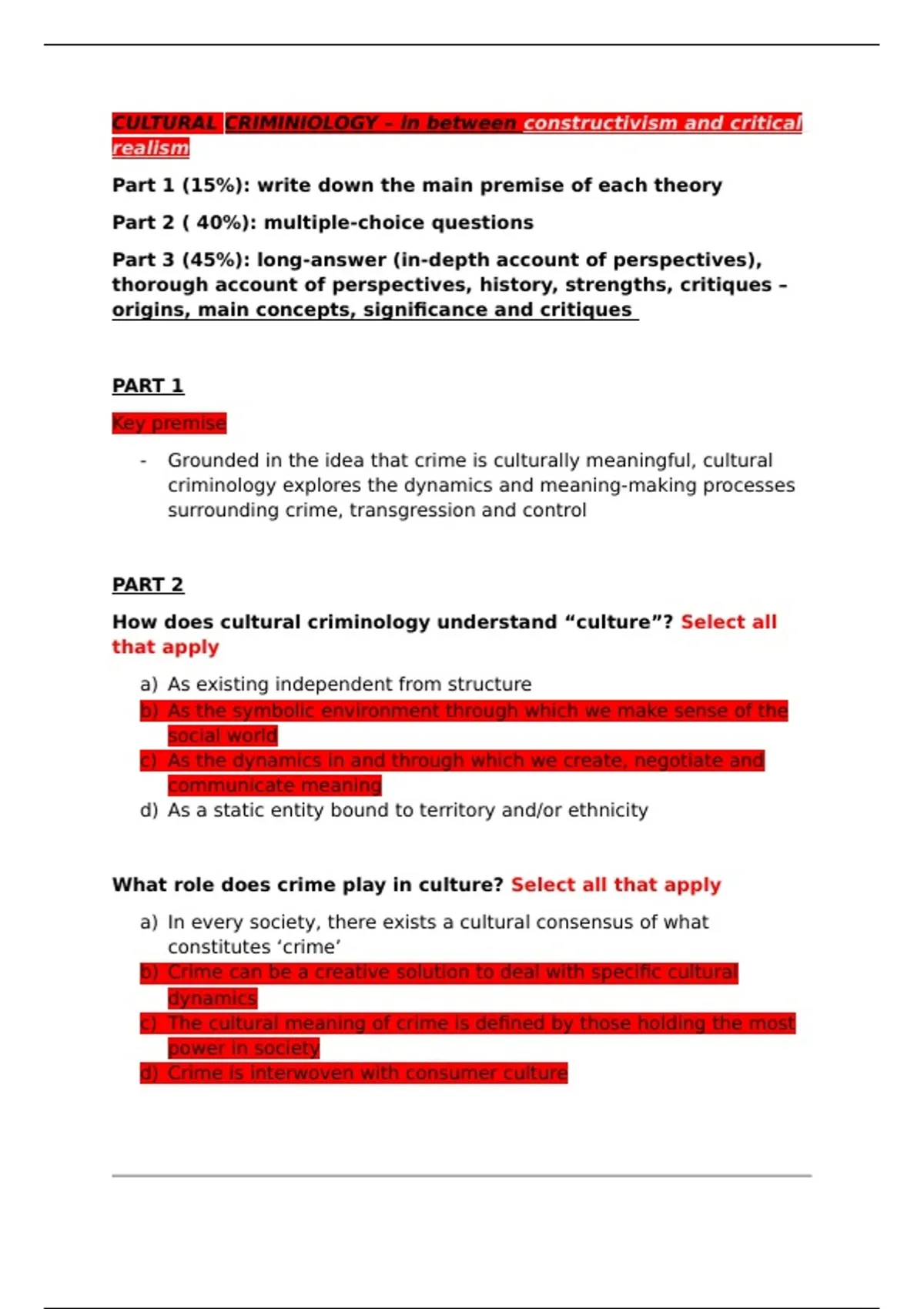 , 1. Key Premise of Cultural Criminology