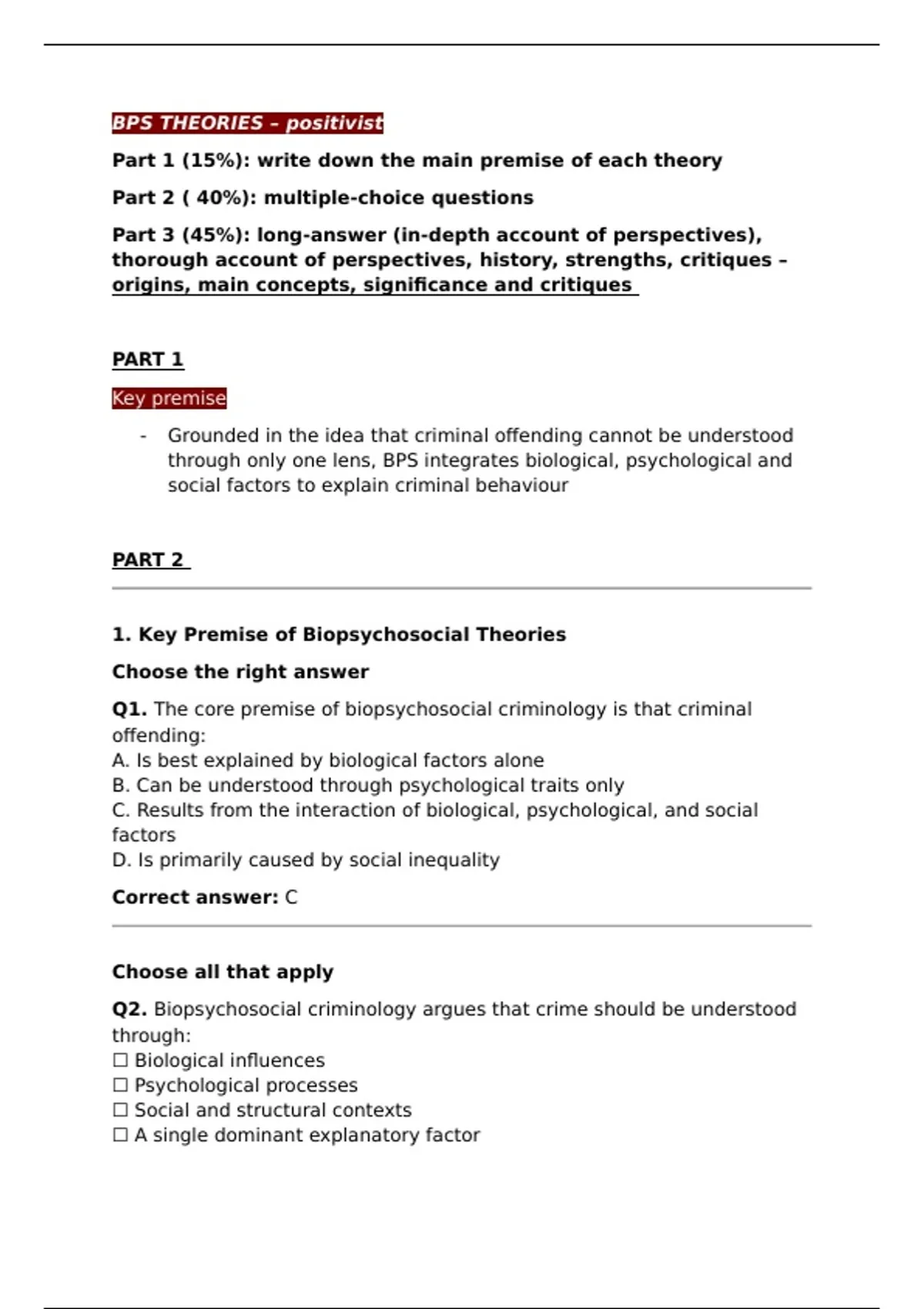 Q2. Biopsychosocial criminology argues that crime should be understood