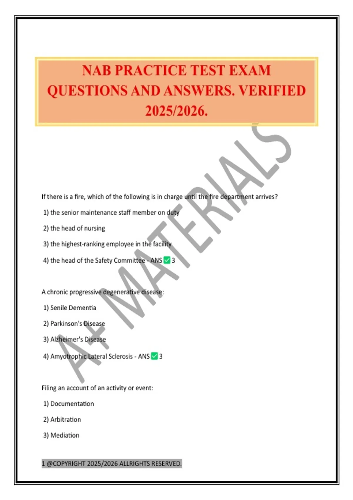 NAB PRACTICE TEST EXAM QUESTIONS AND ANSWERS. VERIFIED 2025/2026.