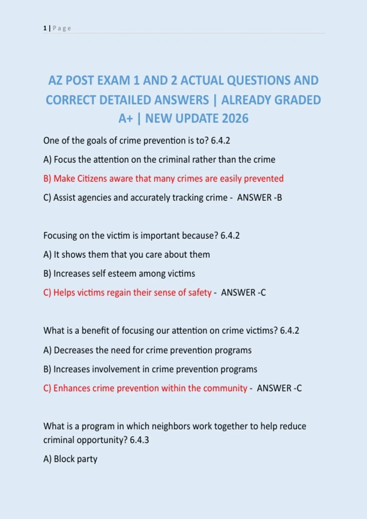 AZ POST EXAM 1 AND 2 ACTUAL QUESTIONS AND